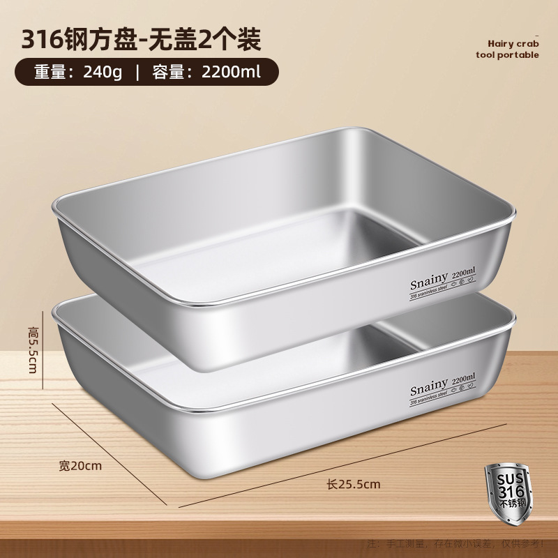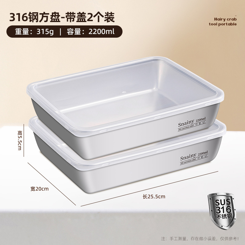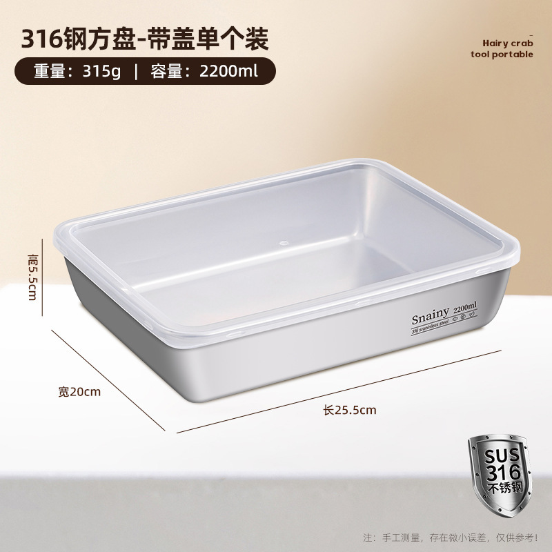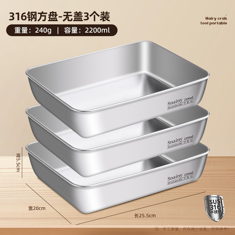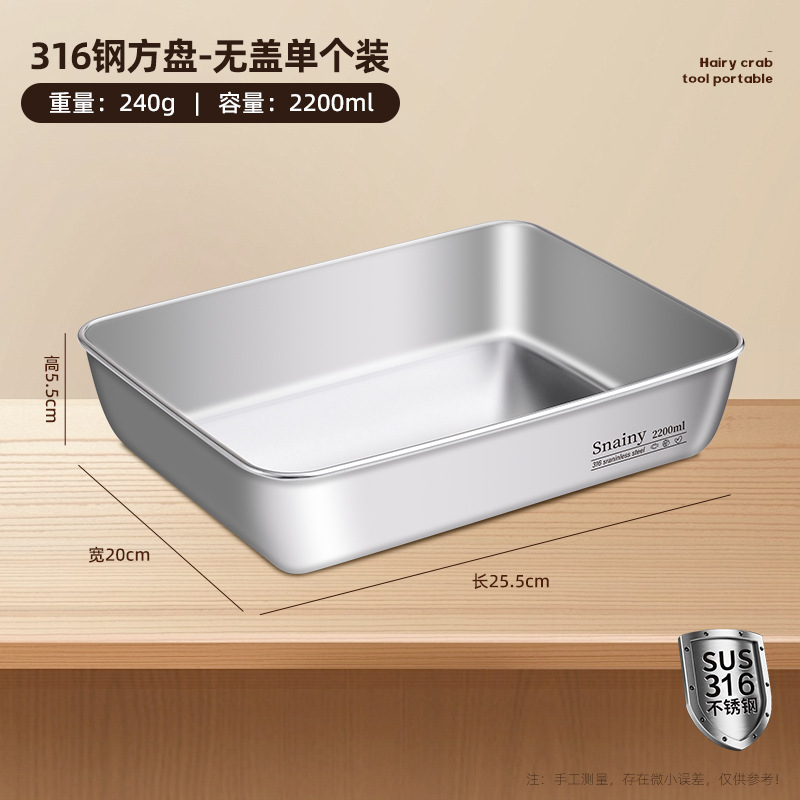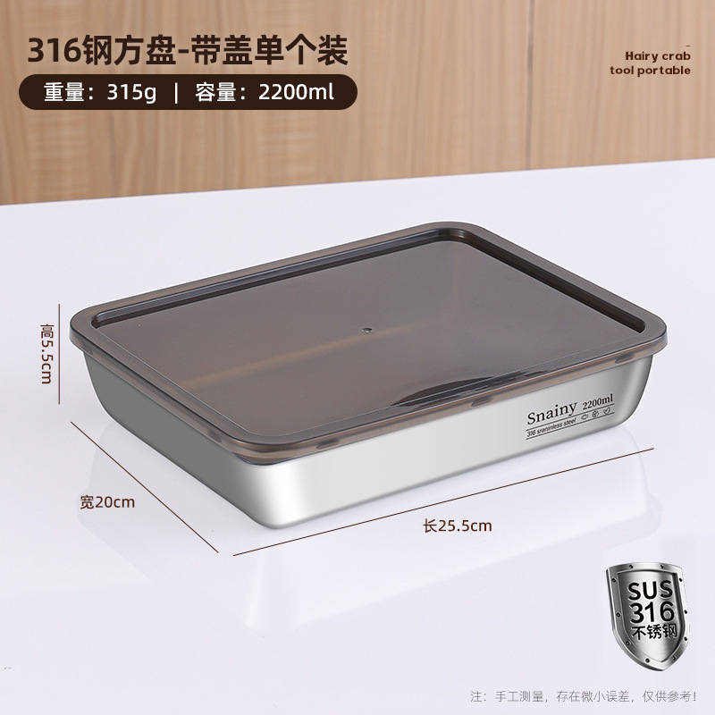 316 스테인레스 스틸 보존 상자 뚜껑 스퀘어 플레이트 304 식품 등급 트레이 스퀘어 박스 직사각형 두꺼운 사각형 분지 요리스토어 가기
