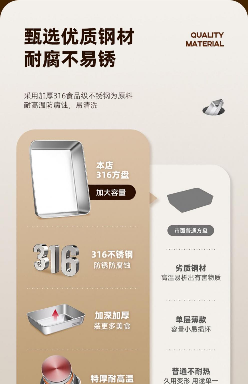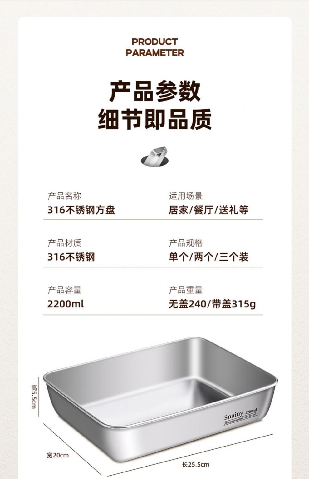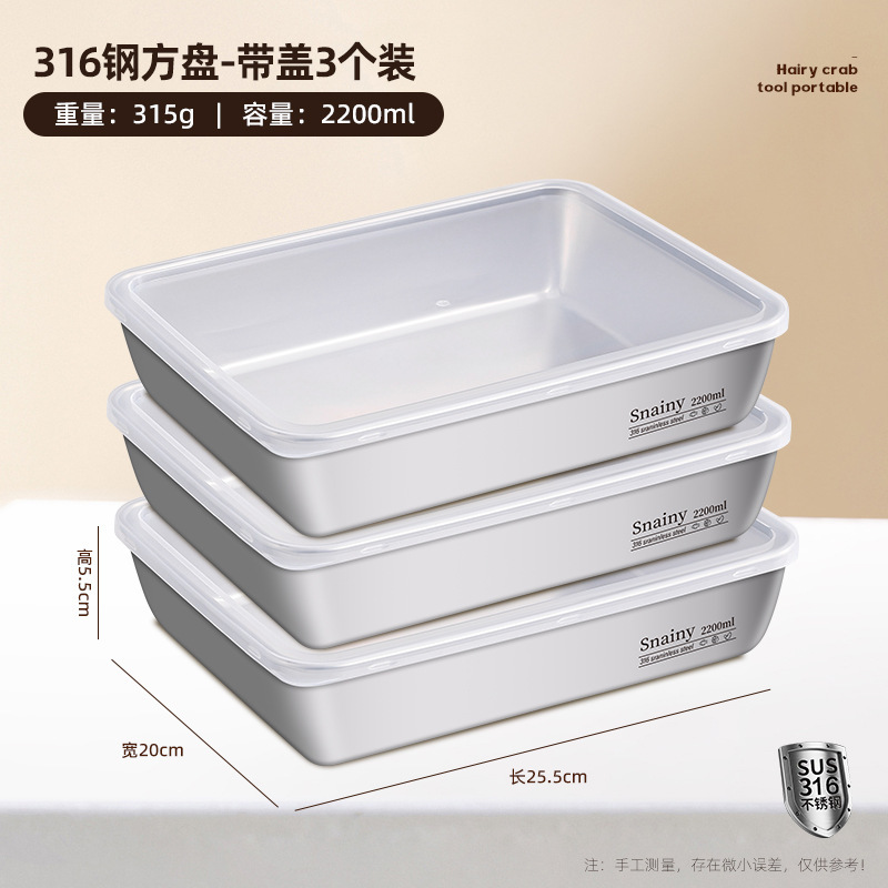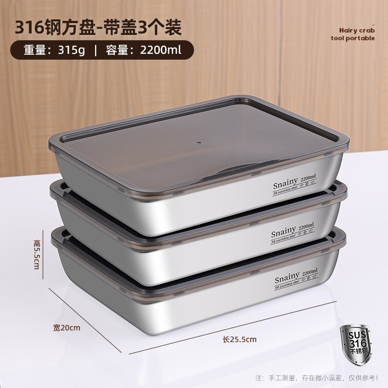 316 스테인레스 스틸 보존 상자 뚜껑 스퀘어 플레이트 304 식품 등급 트레이 스퀘어 박스 직사각형 두꺼운 사각형 분지 요리스토어 가기