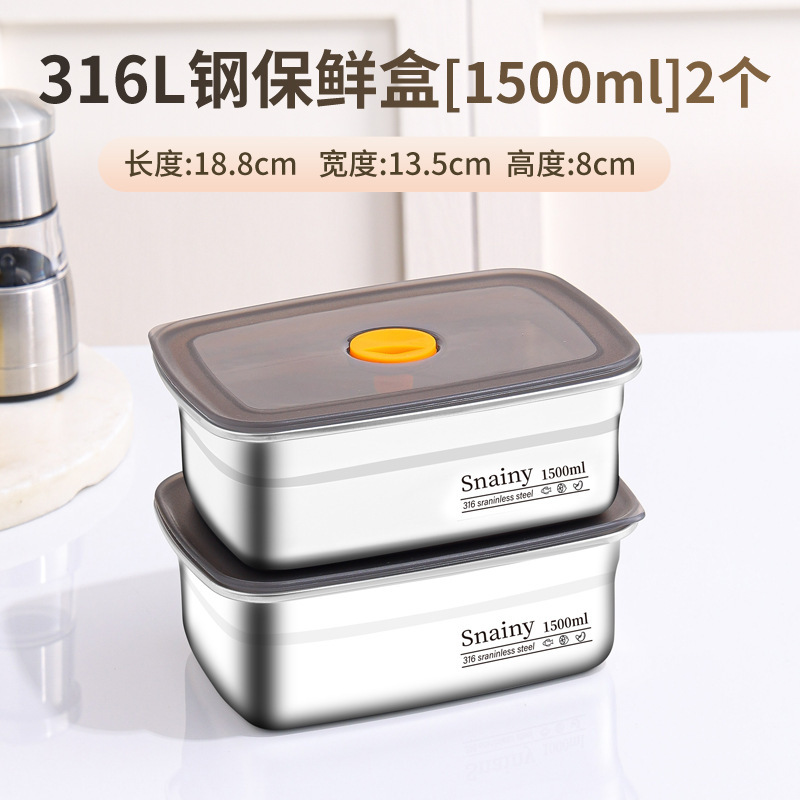 • (2개입) 밀봉된 사각박스 1500ml [316L 스틸]