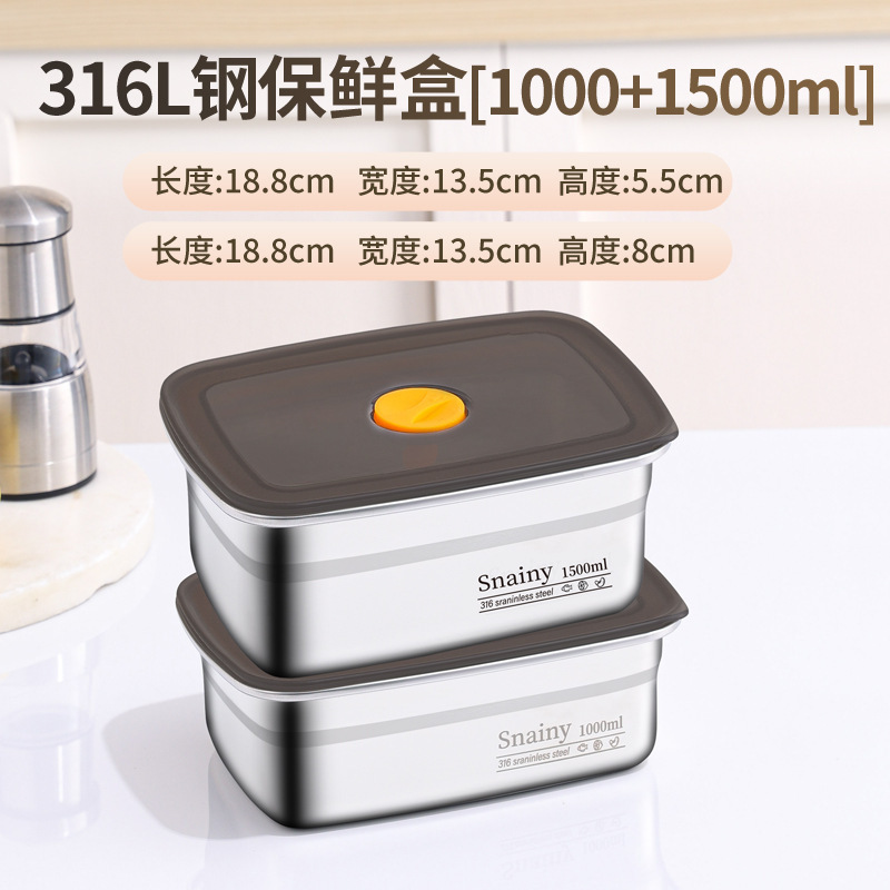 • 밀봉된 사각박스 1000+1500ml [316L 스틸]