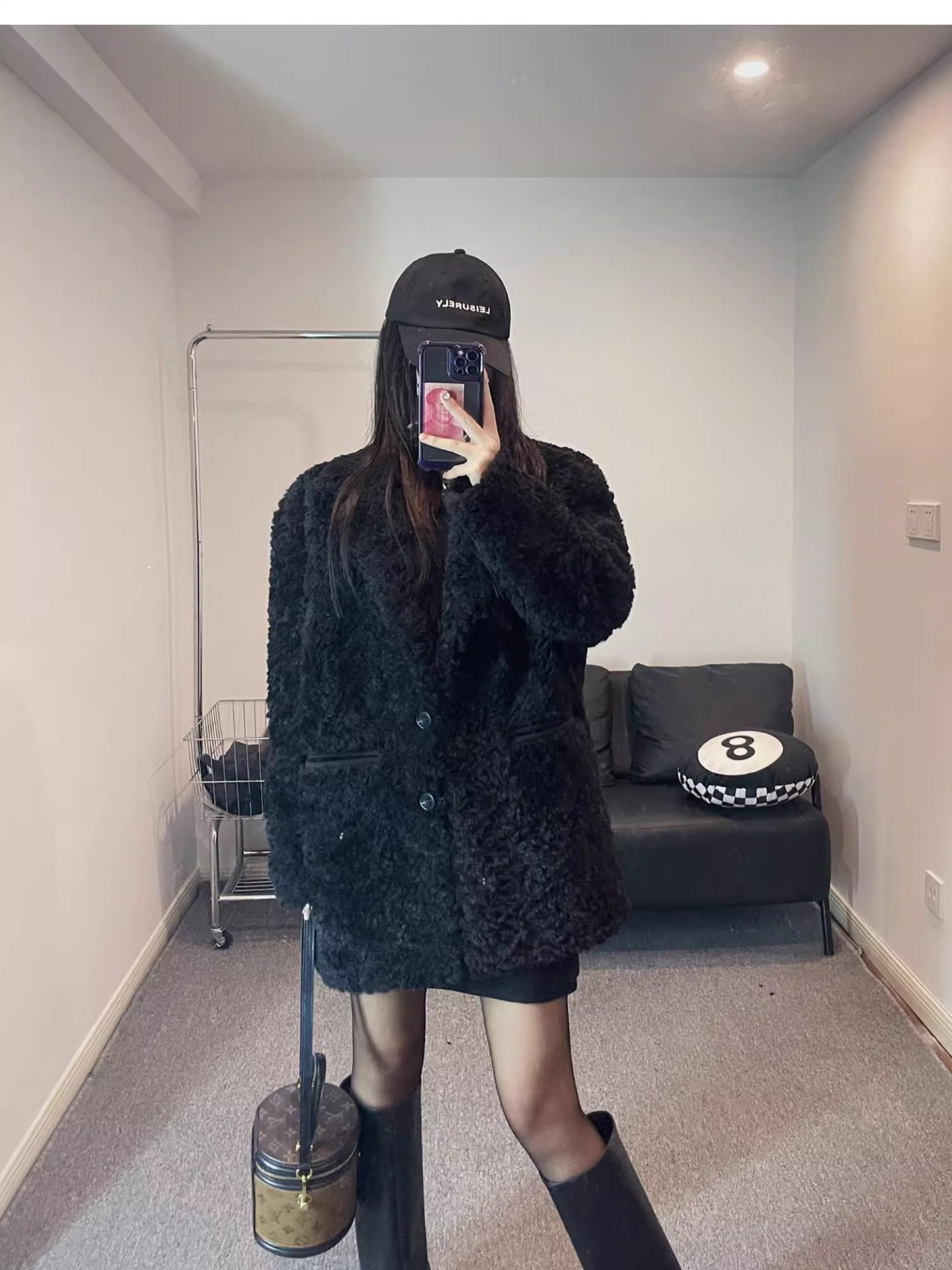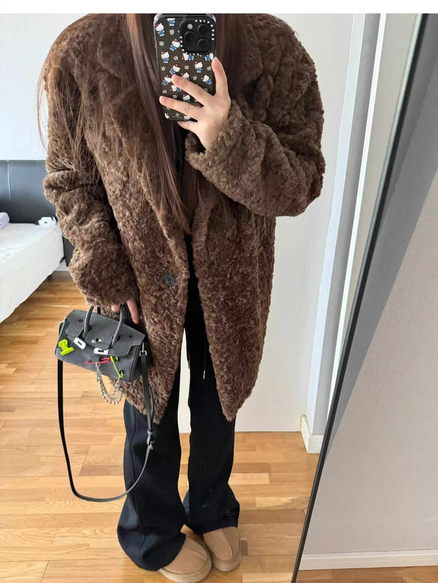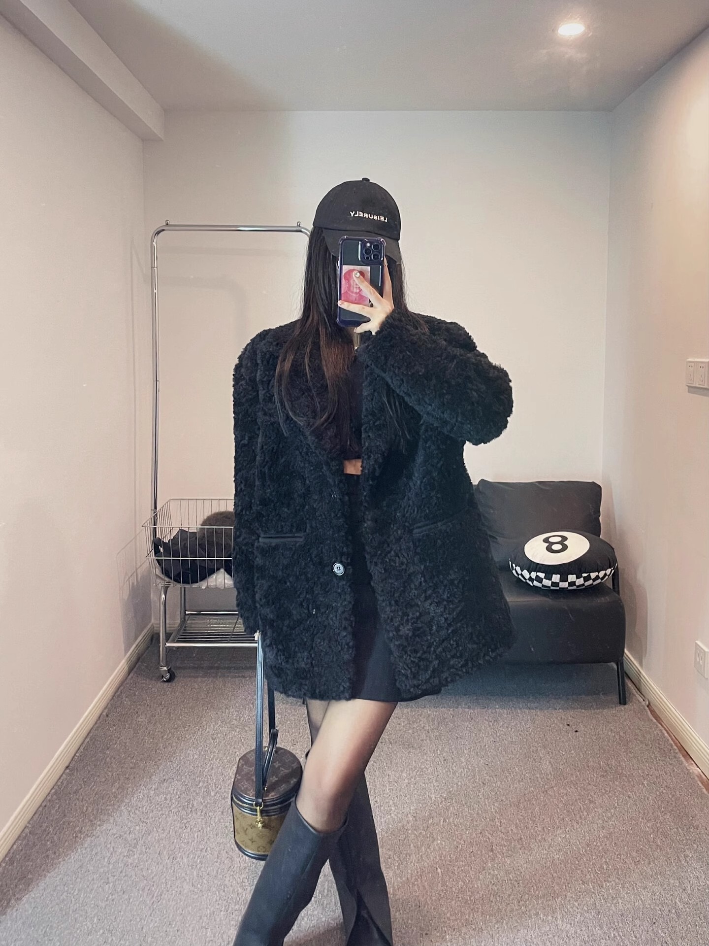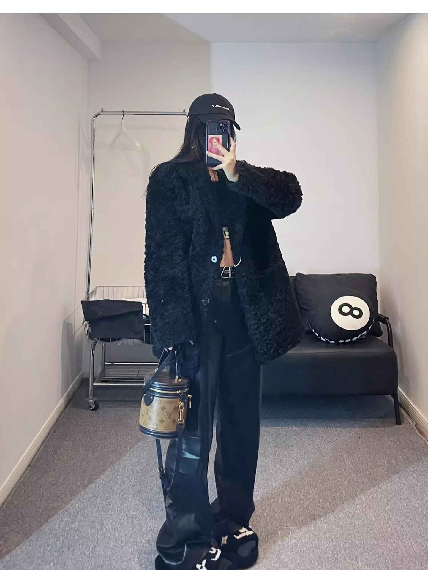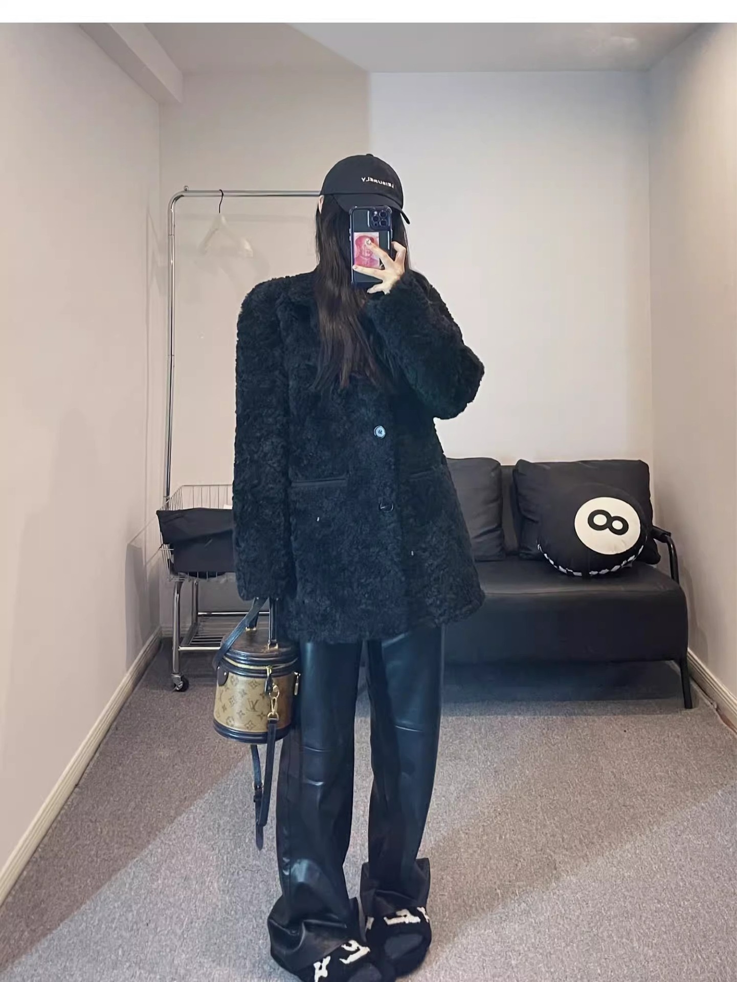 대외 무역 새로운 겨울 2024 양모 인조 모피 코트 여성의 두꺼운 느슨한 세트 칼라 긴 모피 코트스토어 가기