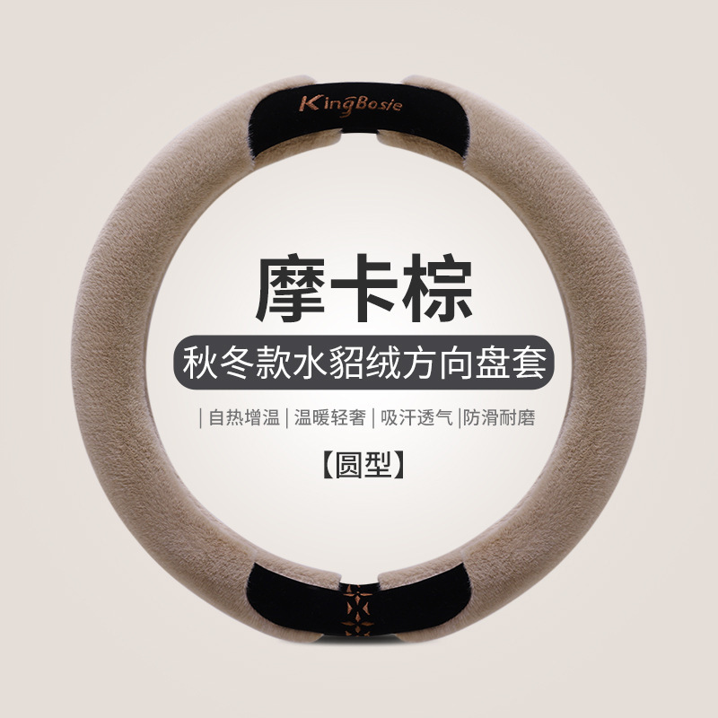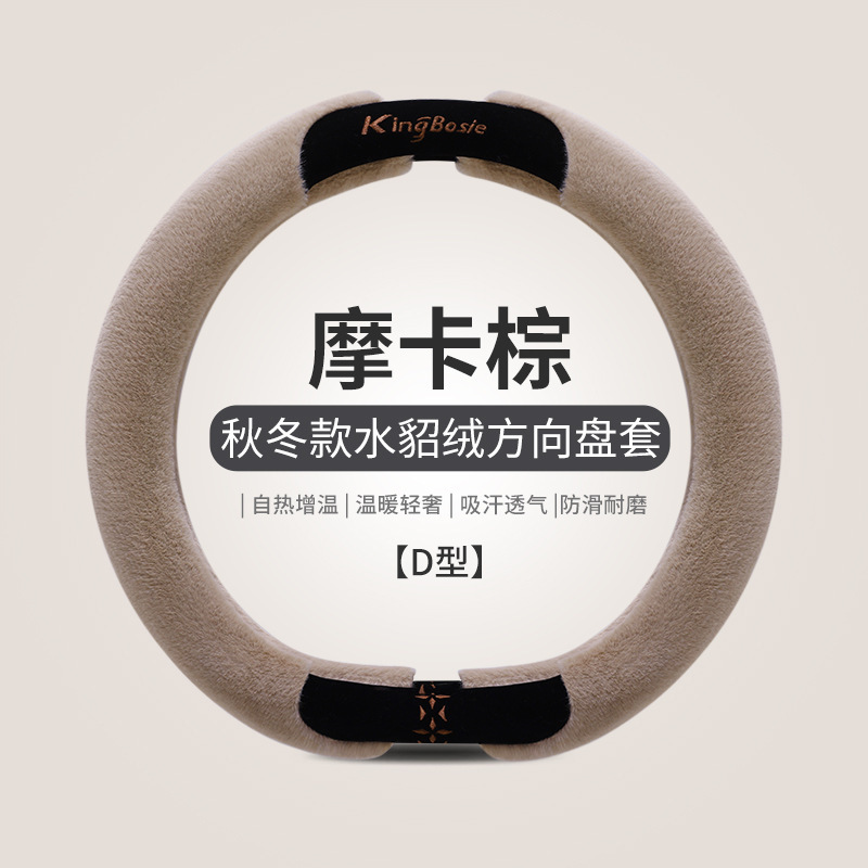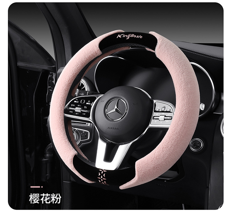 신형 밍크털 겨울 자동차 핸들 커버, 패셔너블하고 따뜻하며 미끄럼 방지 기능이 있는 남녀 공용 자동차 인테리어 액세서리, 해외 아마존 판매