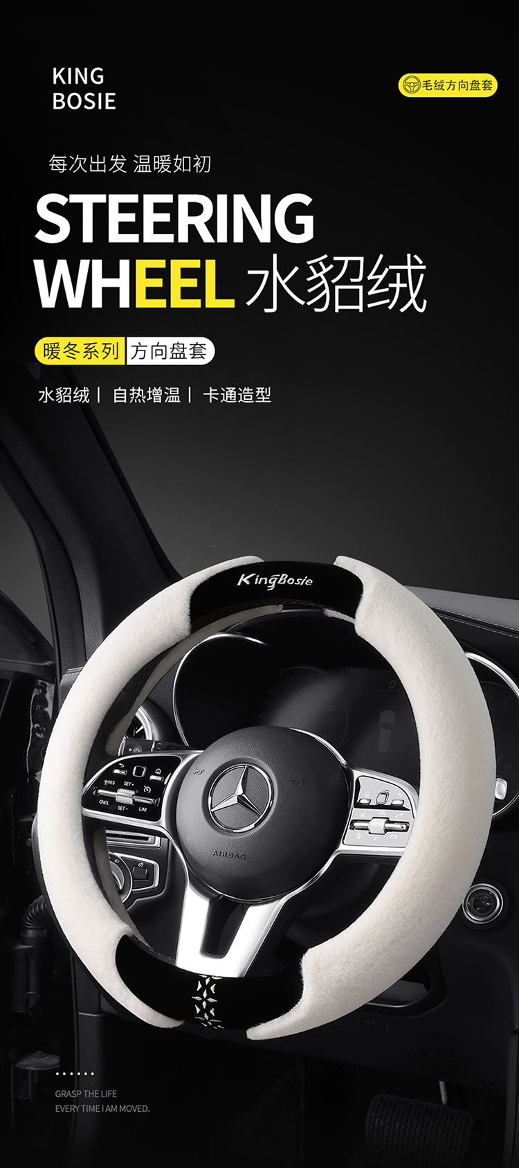 신형 밍크털 겨울 자동차 핸들 커버, 패셔너블하고 따뜻하며 미끄럼 방지 기능이 있는 남녀 공용 자동차 인테리어 액세서리, 해외 아마존 판매스토어 가기