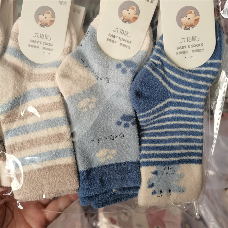 소년 소녀를위한 6 손가락 마우스 아기 겨울 따뜻한 산호 벨벳 양말 아기 종아리 양말 뼈없는 긴 튜브 다리 양말 0-3스토어 가기