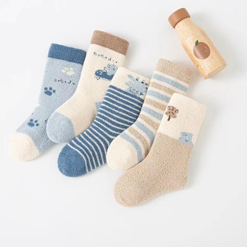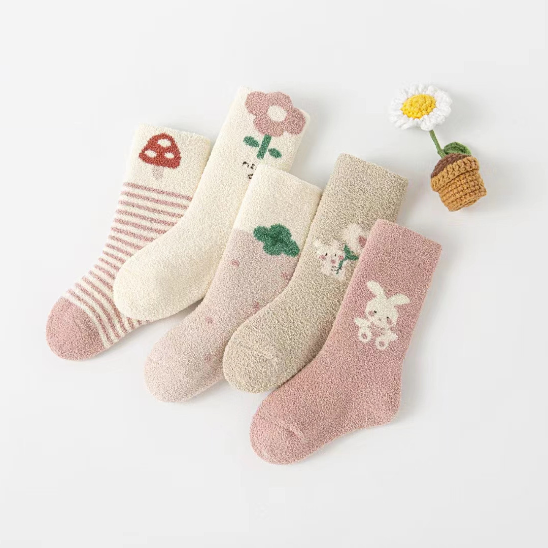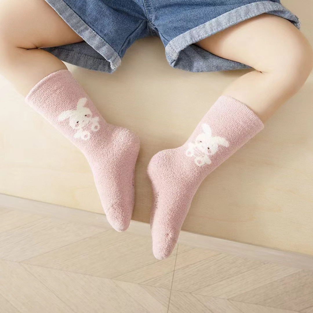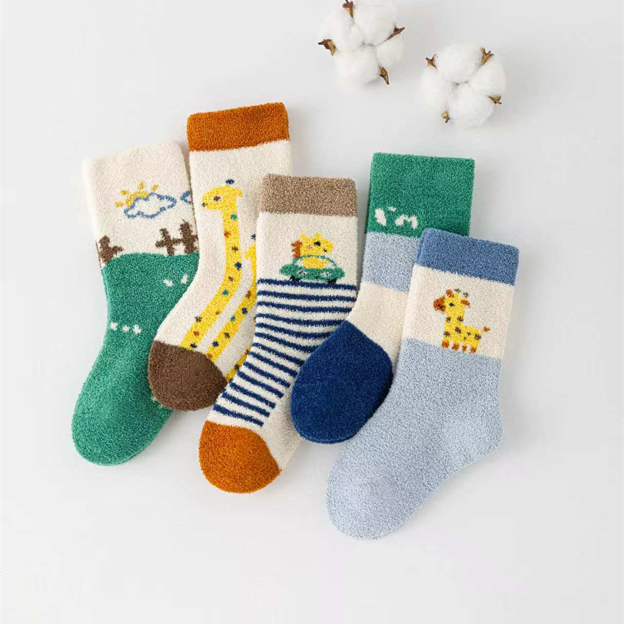 소년 소녀를위한 6 손가락 마우스 아기 겨울 따뜻한 산호 벨벳 양말 아기 종아리 양말 뼈없는 긴 튜브 다리 양말 0-3