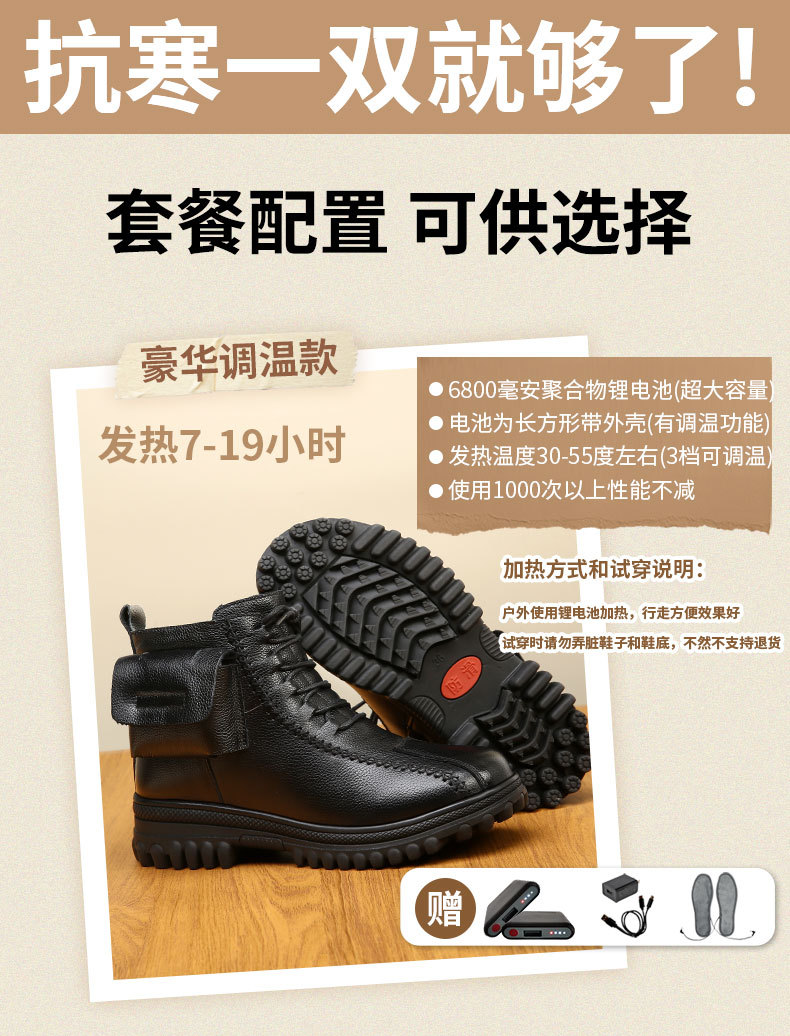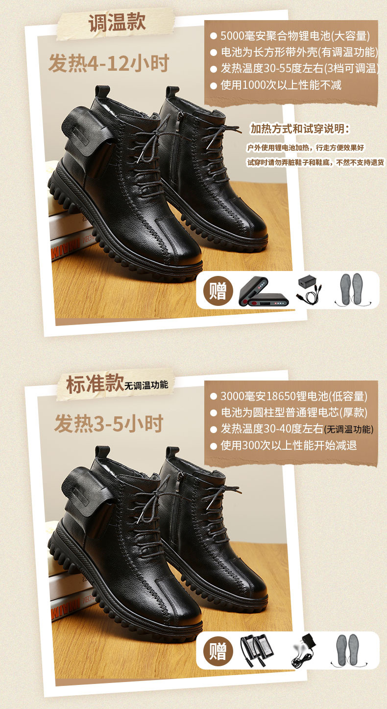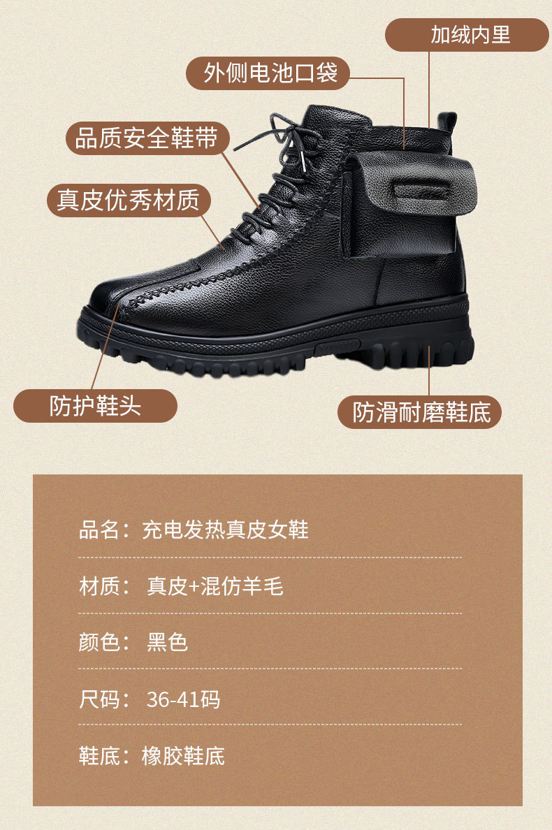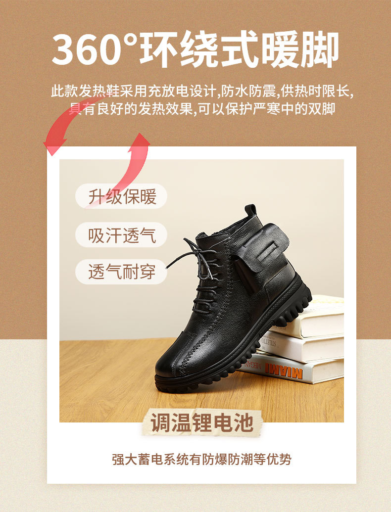 새로운 여성 가죽 신발 충전 난방 따뜻한 신발 진짜 가죽 기모 코튼 신발 난방 걷기 전기 따뜻한 신발 마틴 부츠
