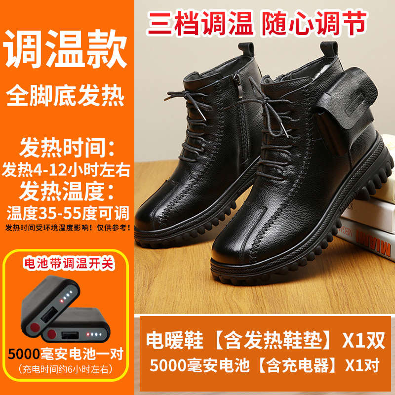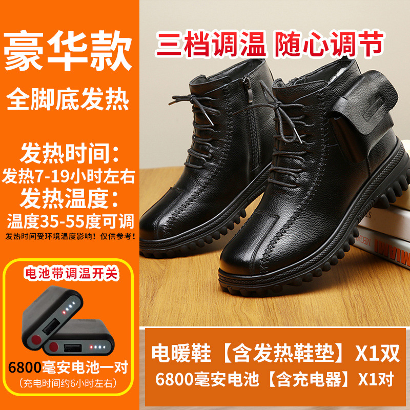 새로운 여성 가죽 신발 충전 난방 따뜻한 신발 진짜 가죽 기모 코튼 신발 난방 걷기 전기 따뜻한 신발 마틴 부츠스토어 가기