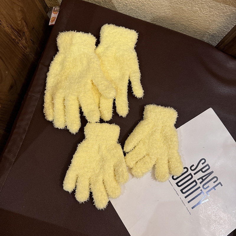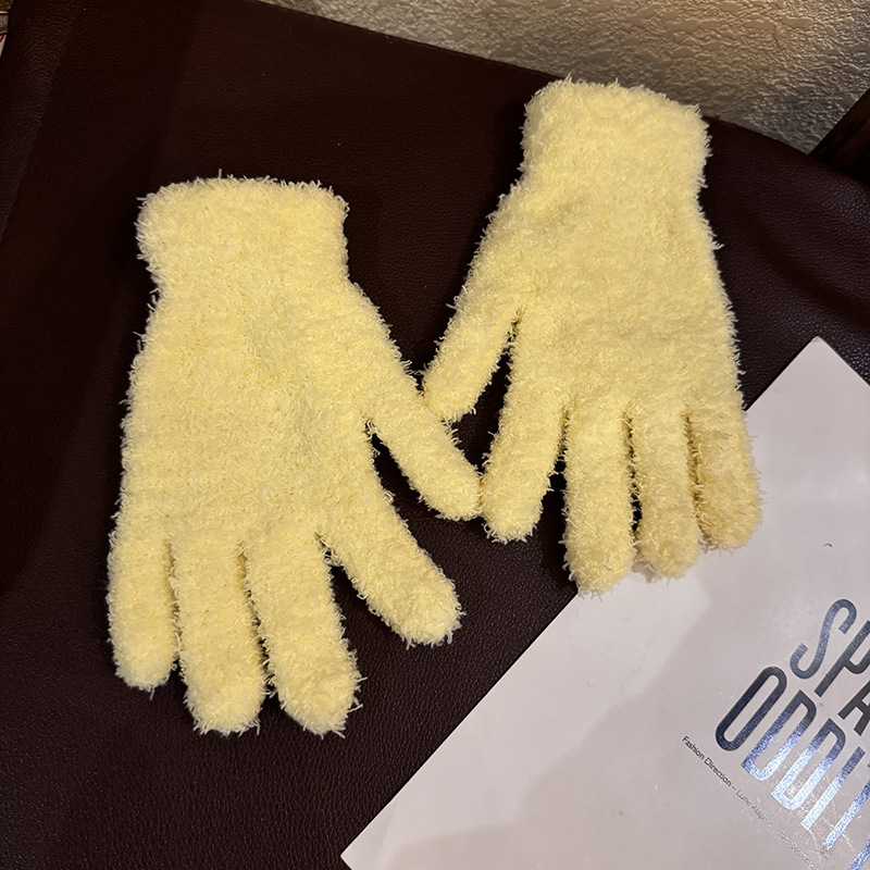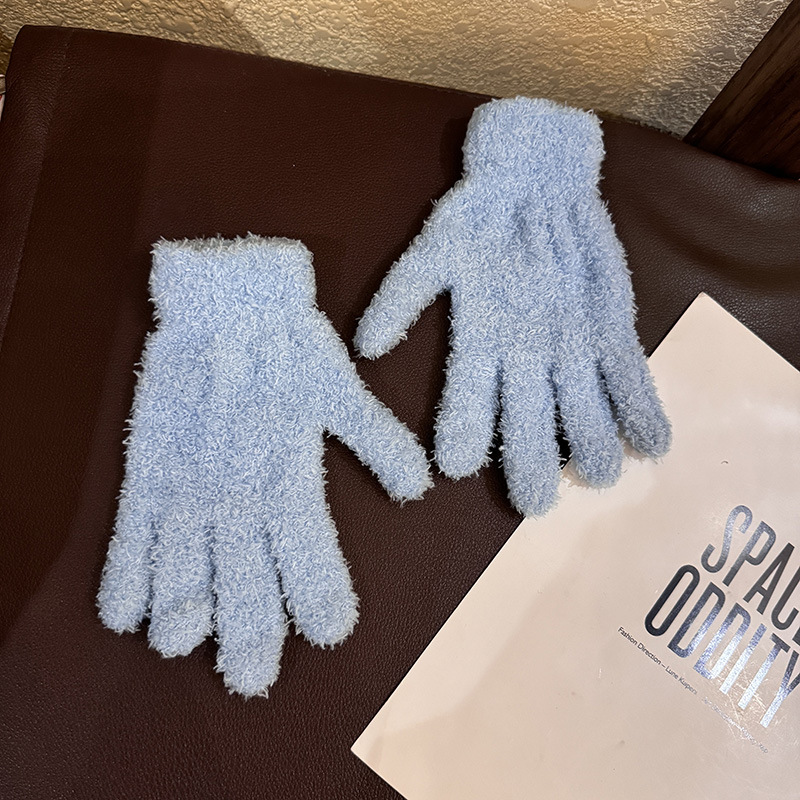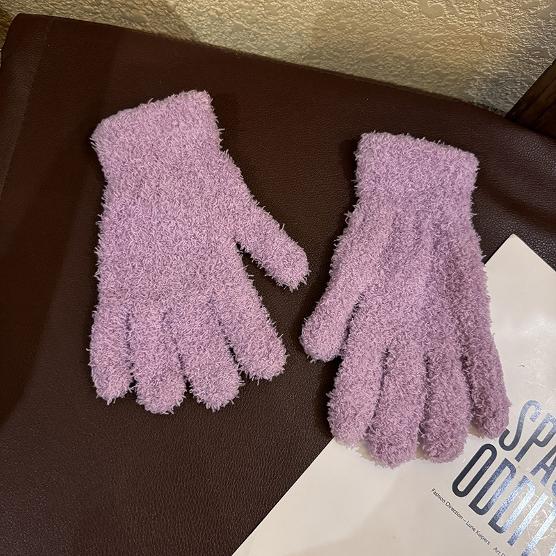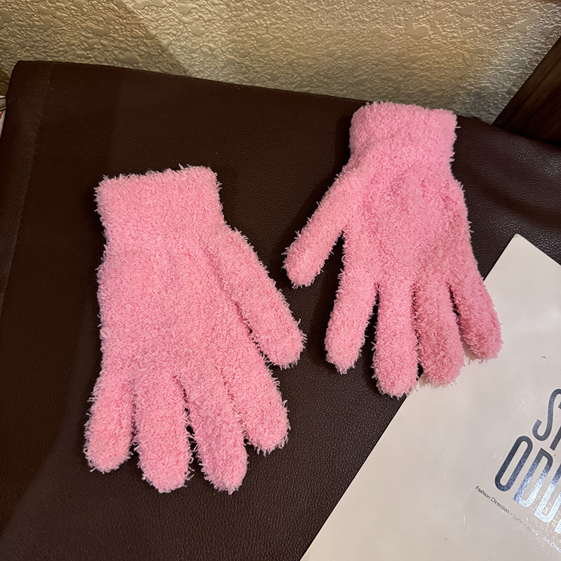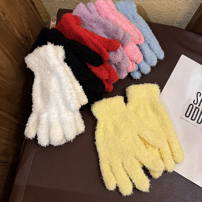 한국 솔리드 컬러 귀여운 산호 양털 장갑 여성의 가을과 겨울 두꺼운 사이클링 따뜻한 봉제 사탕 컬러 냉간 올매치