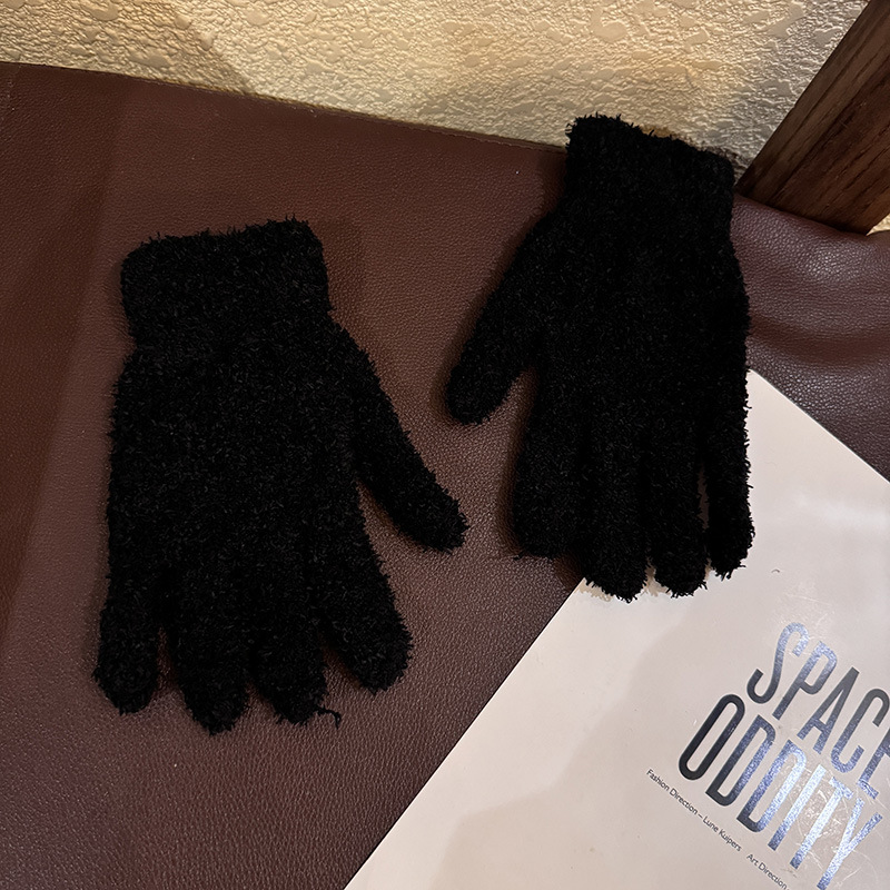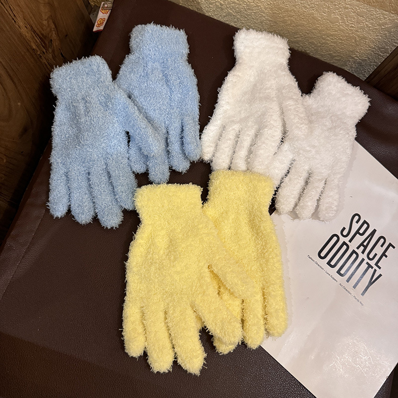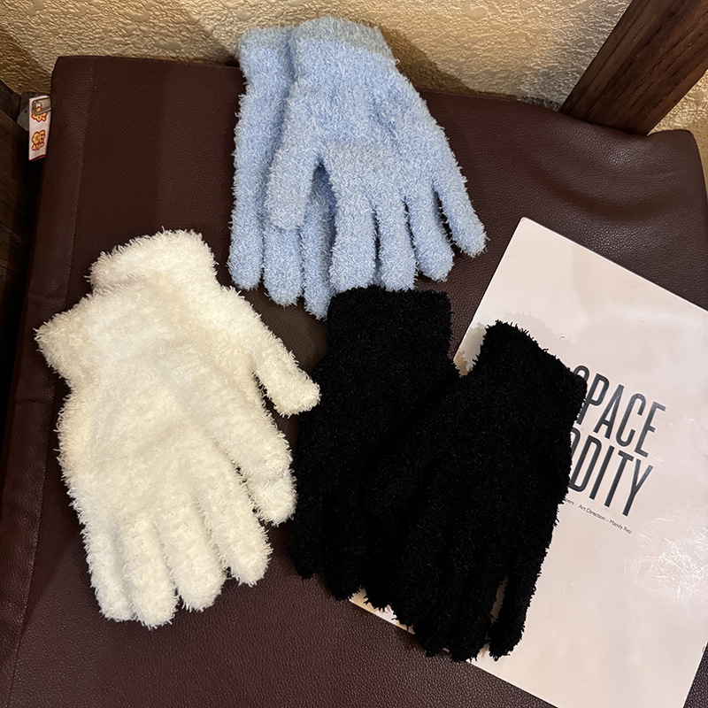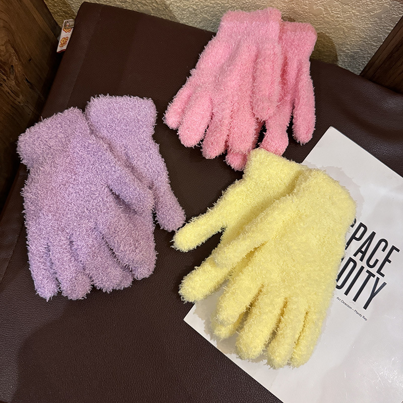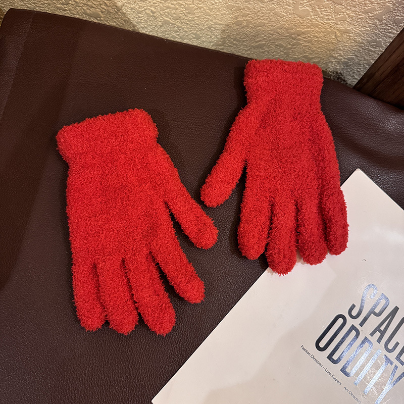 한국 솔리드 컬러 귀여운 산호 양털 장갑 여성의 가을과 겨울 두꺼운 사이클링 따뜻한 봉제 사탕 컬러 냉간 올매치스토어 가기