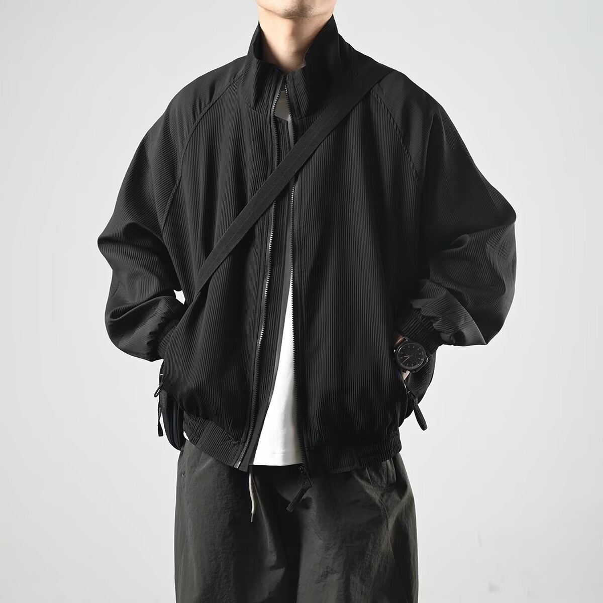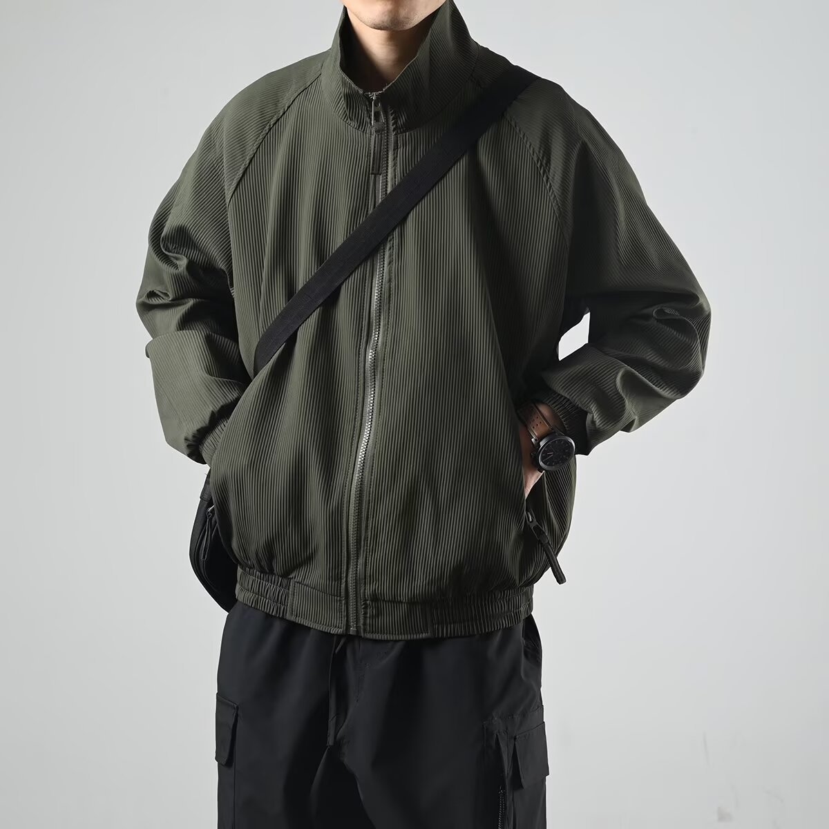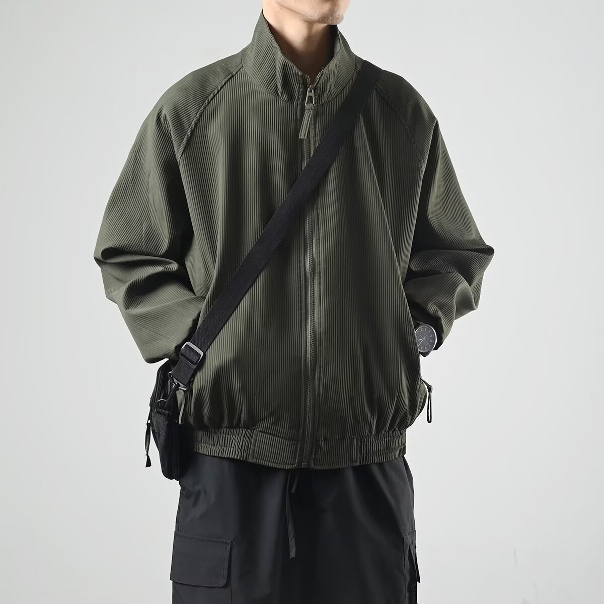 줄무늬 재킷 재킷 남자 수직 칼라 일본 빈티지 작업복 봄과 가을 느슨한 캐주얼 올 매치 트렌디 탑
