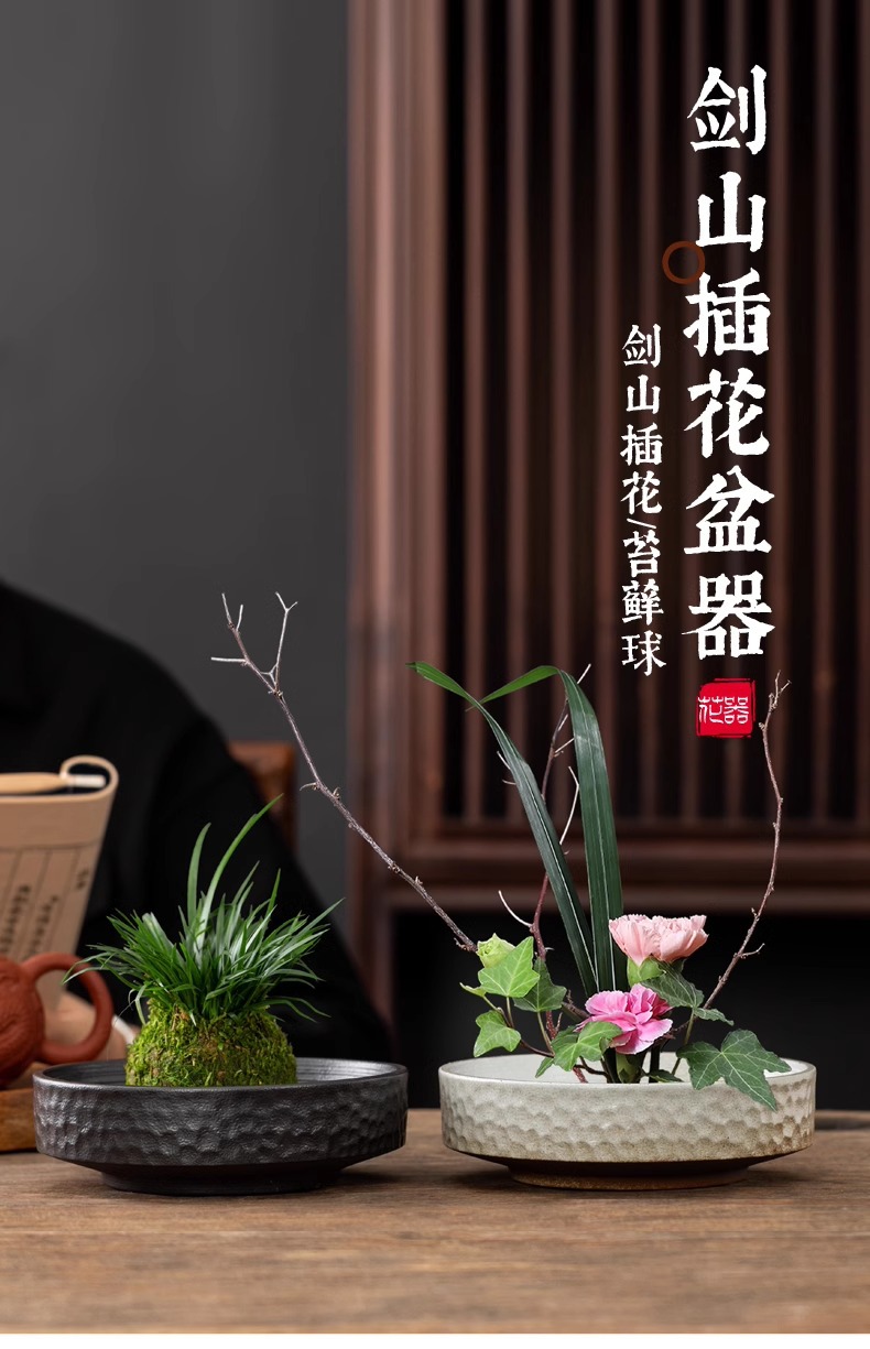 검산 꽃꽂이 일본식 선(禪) 스타일 수경재배 용기 이끼 화분 화분 꽃받침대 브라질 나무 탁상용 차탁상 화분
