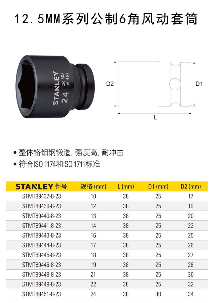 스탠리 STMT 894.38 백만 공동 12.5mm 시리즈 6 각 슬리브 블랙 조인트 로드 73497 윈드 슬리브스토어 가기