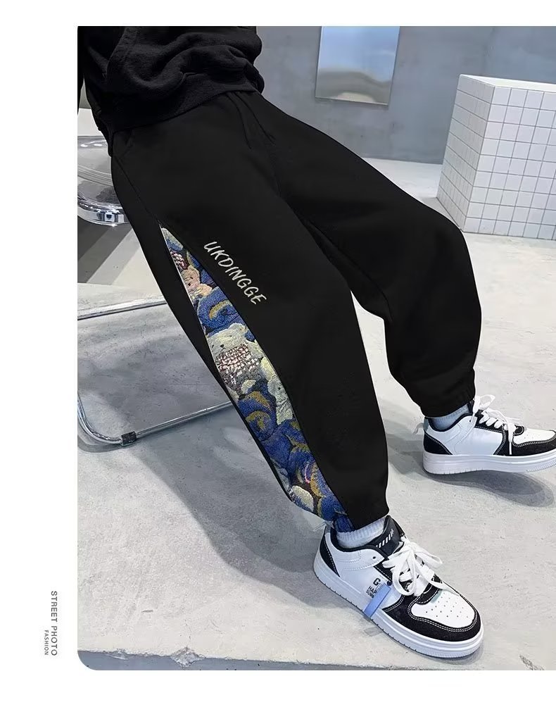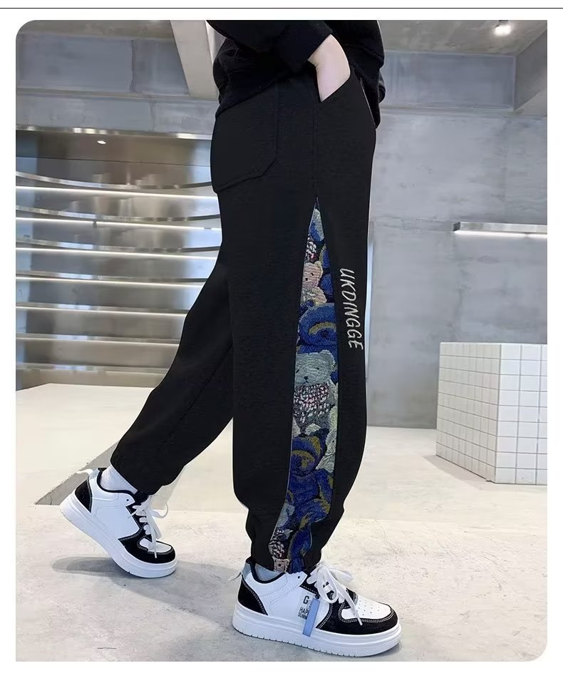 소년 바지 봄과 가을 2024 새로운 대형 어린이 스포츠 바지 봄 어린이 캐주얼 서양식 긴 스웨트 팬츠 아동복스토어 가기