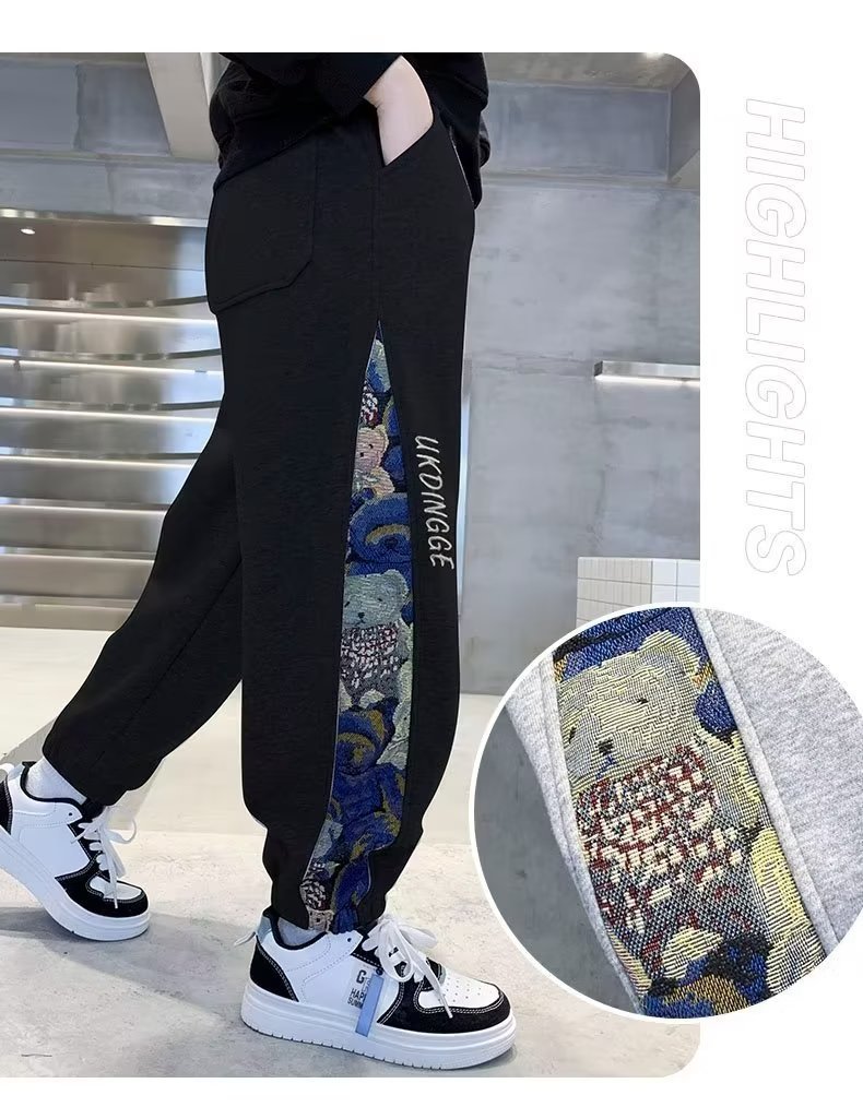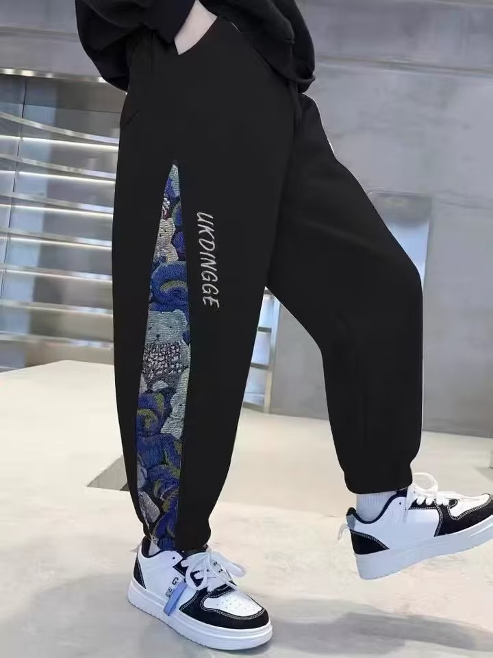 소년 바지 봄과 가을 2024 새로운 대형 어린이 스포츠 바지 봄 어린이 캐주얼 서양식 긴 스웨트 팬츠 아동복