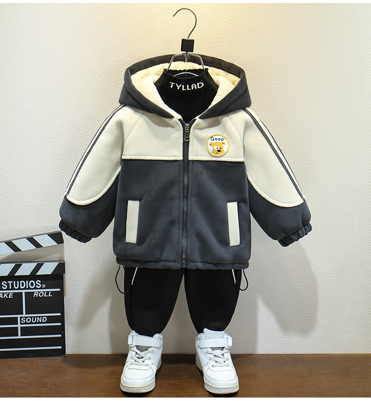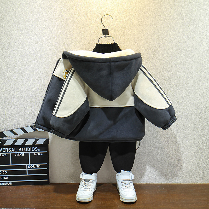 남학생 모직 스웨터 겨울 남학생과 아기의 올림픽 벨벳 후드 재킷 소년 및 어린이 기모 코튼 탑 트렌디 뉴 스타일