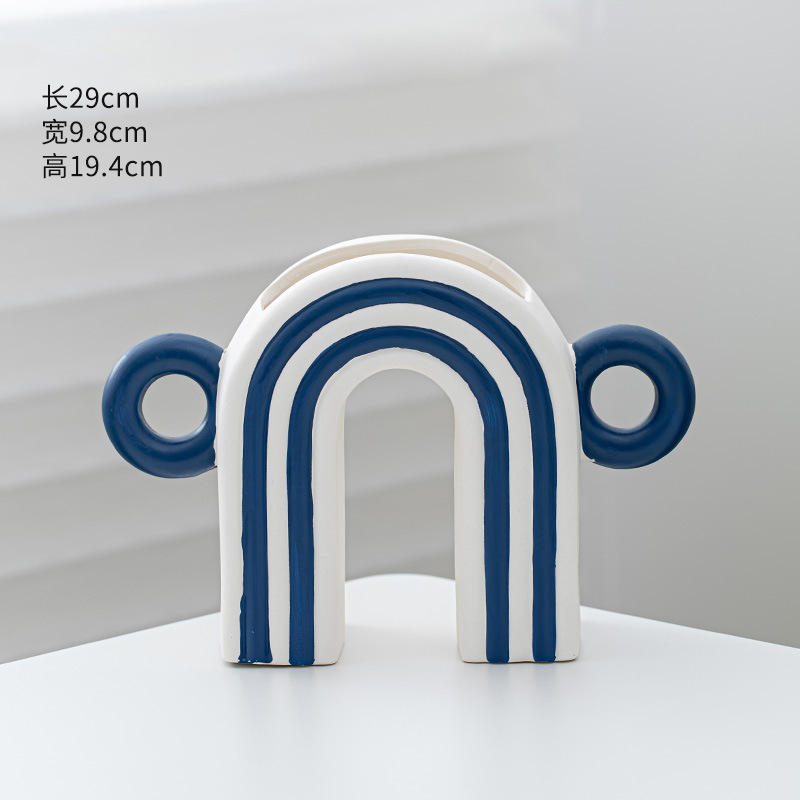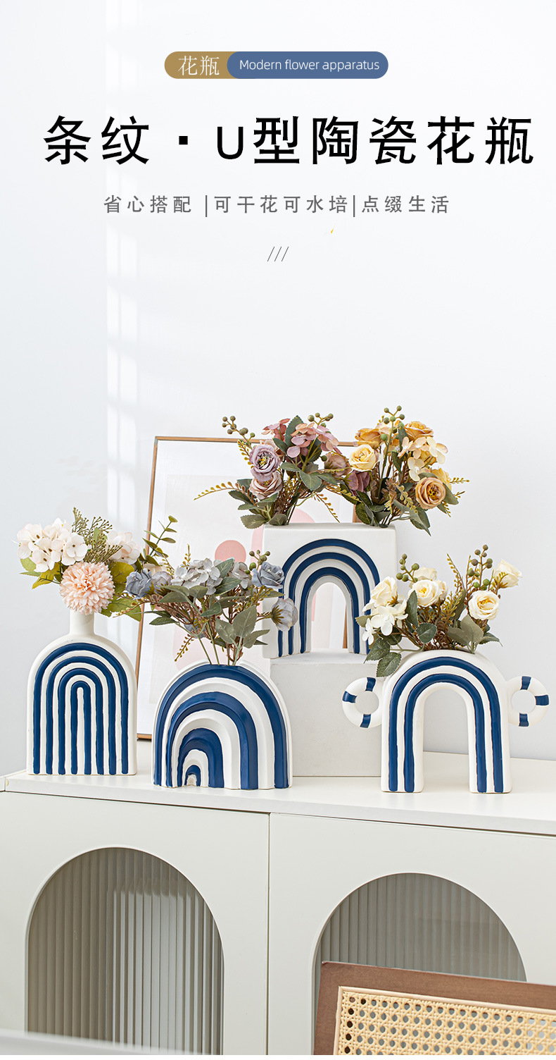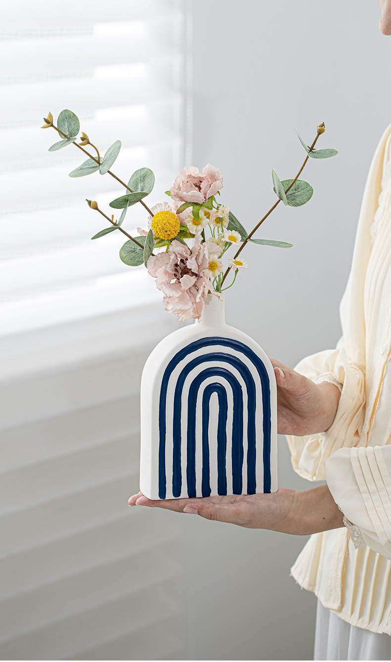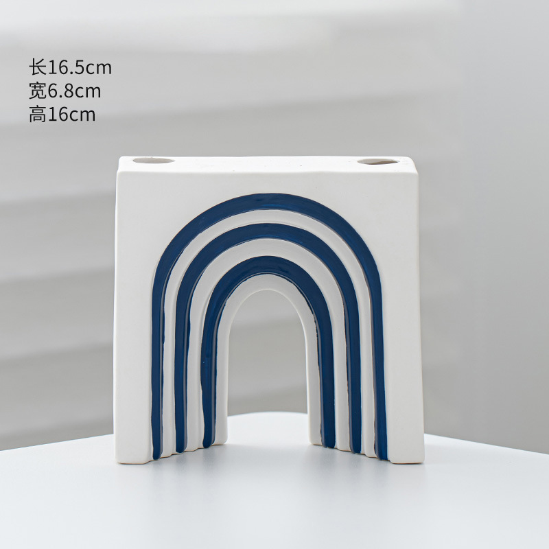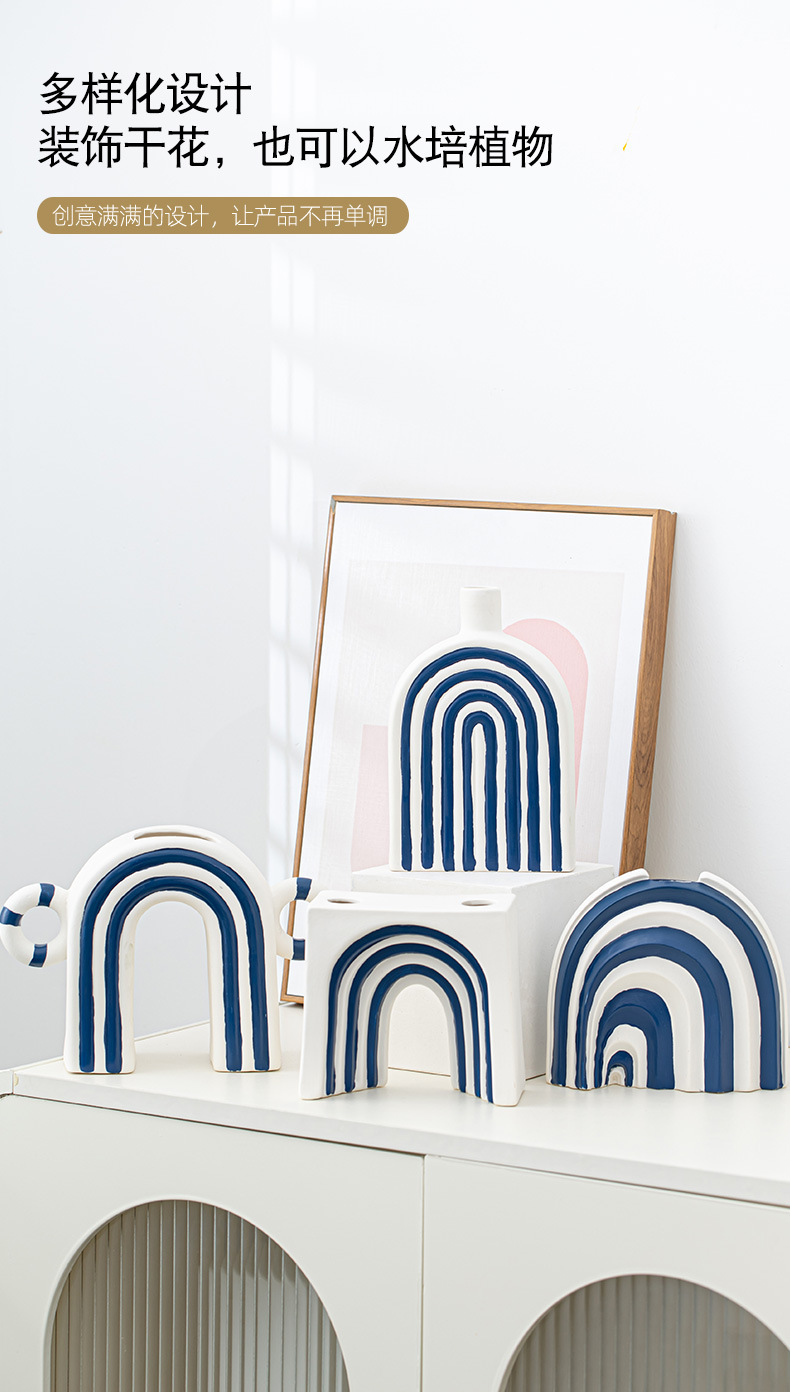 창조적 인 개선문 줄무늬 모양 세라믹 장식품 북유럽 현대 꽃 보석 공예 꽃병 테이블 재고스토어 가기