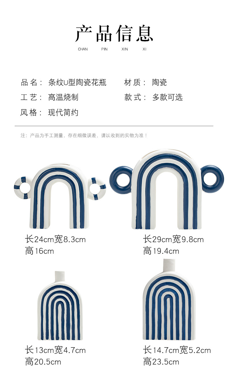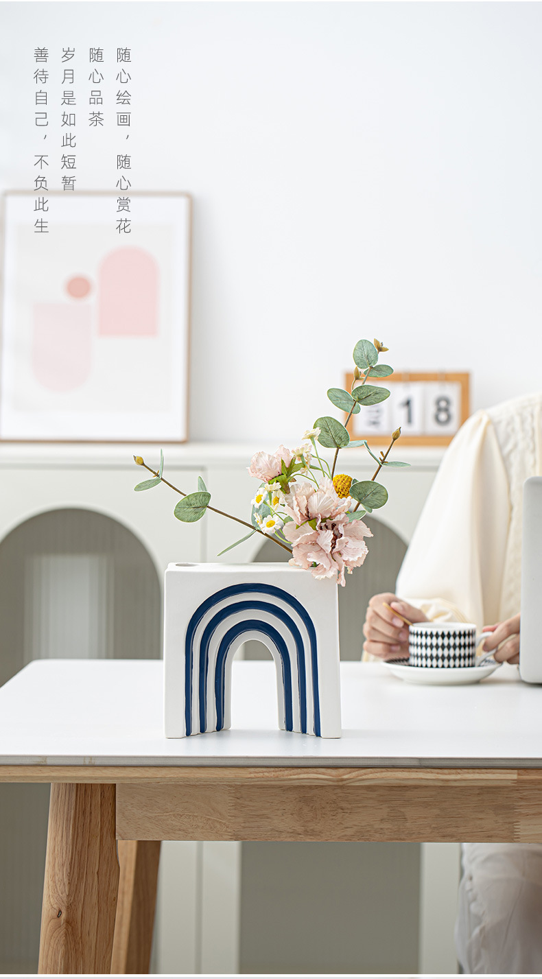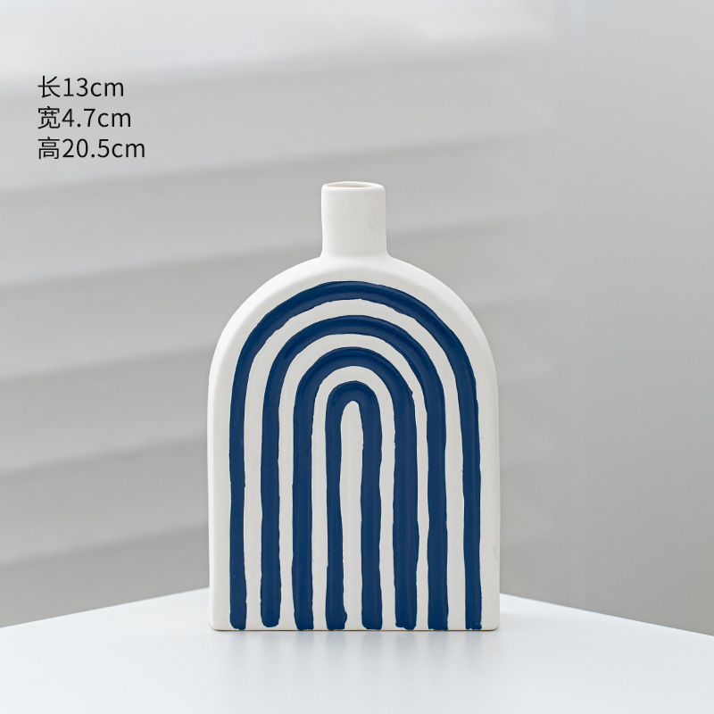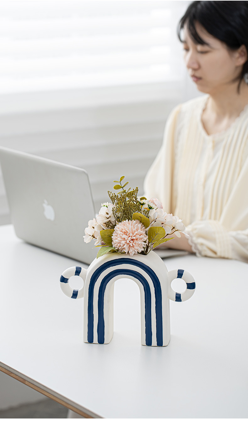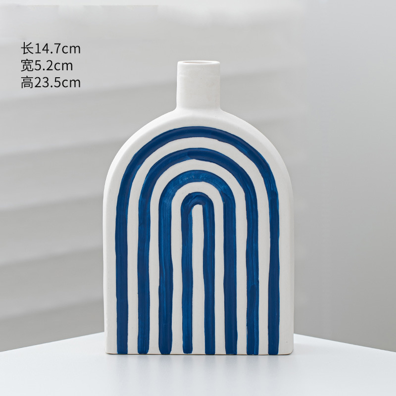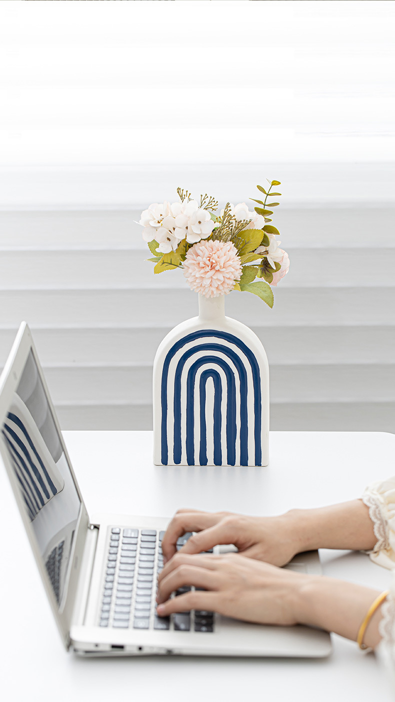창조적 인 개선문 줄무늬 모양 세라믹 장식품 북유럽 현대 꽃 보석 공예 꽃병 테이블 재고스토어 가기