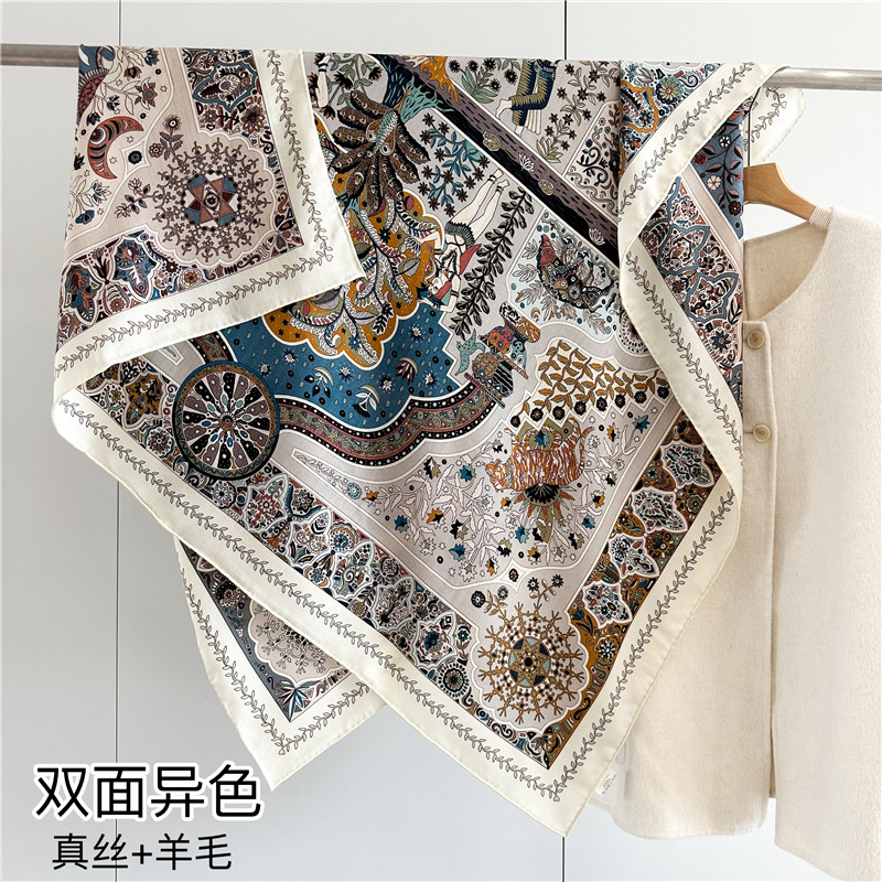 Tiangong Gate 2024 올 매치 실크 울 스퀘어 양면 컬러 핸드 메이드 컬 패셔너블 숄 실크 울 스카프