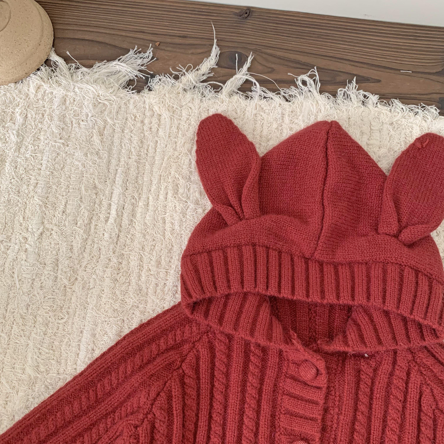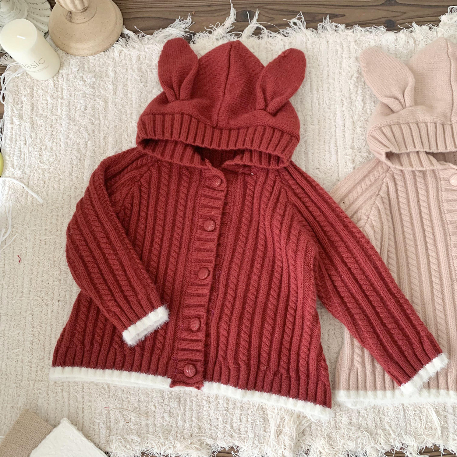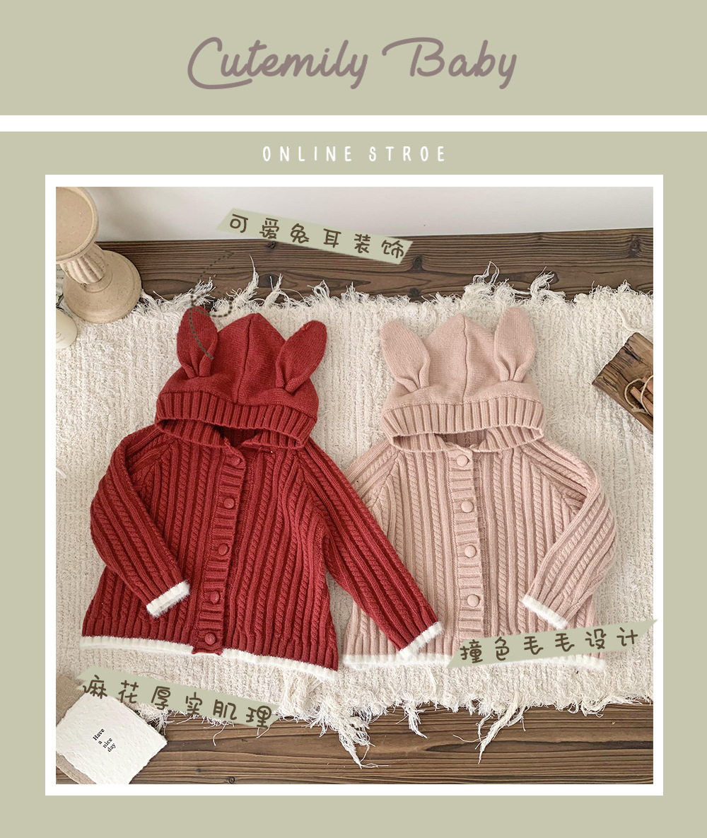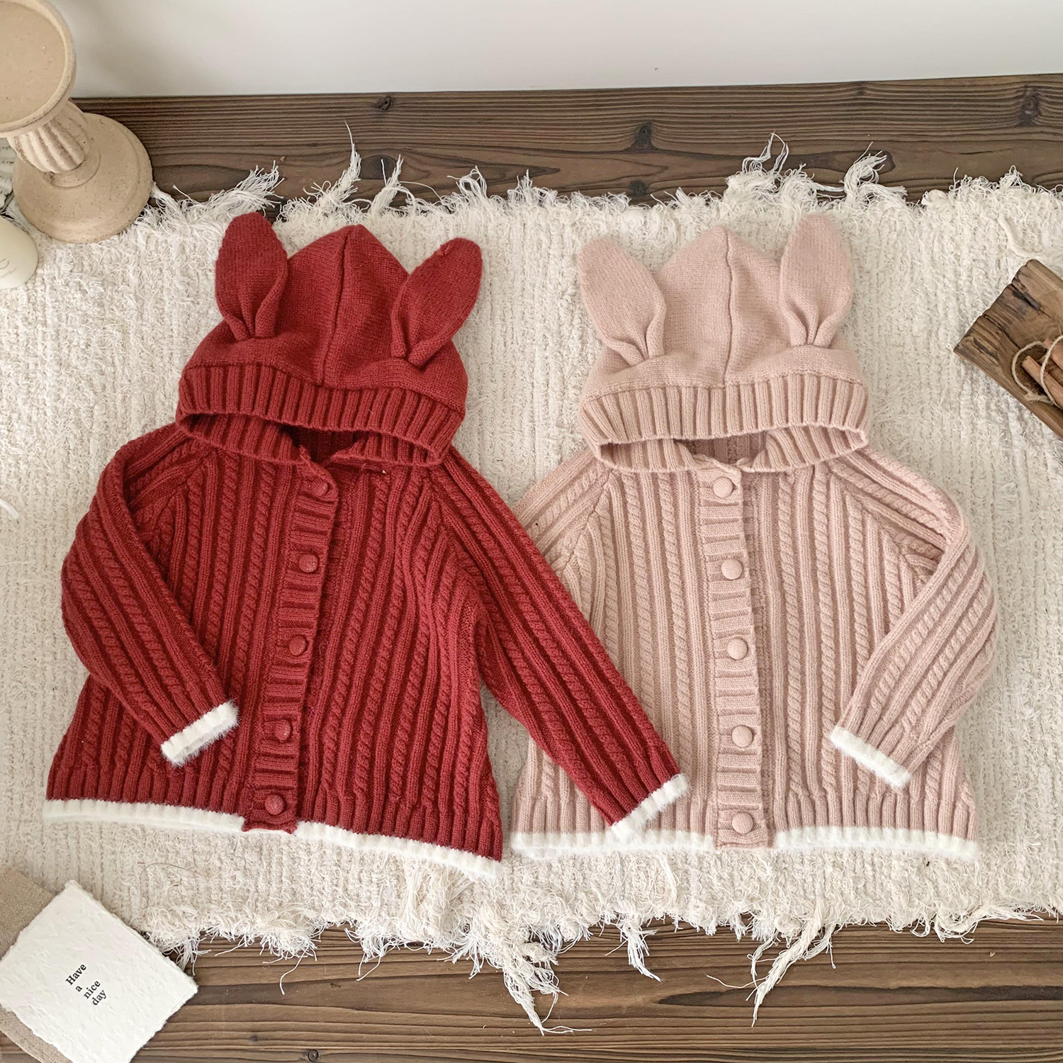 Cutemily Children's Wear Ins 후드 카디건 스웨터 여성의 아기 두꺼운 빈티지 트위스트 귀여운 토끼 귀 코트