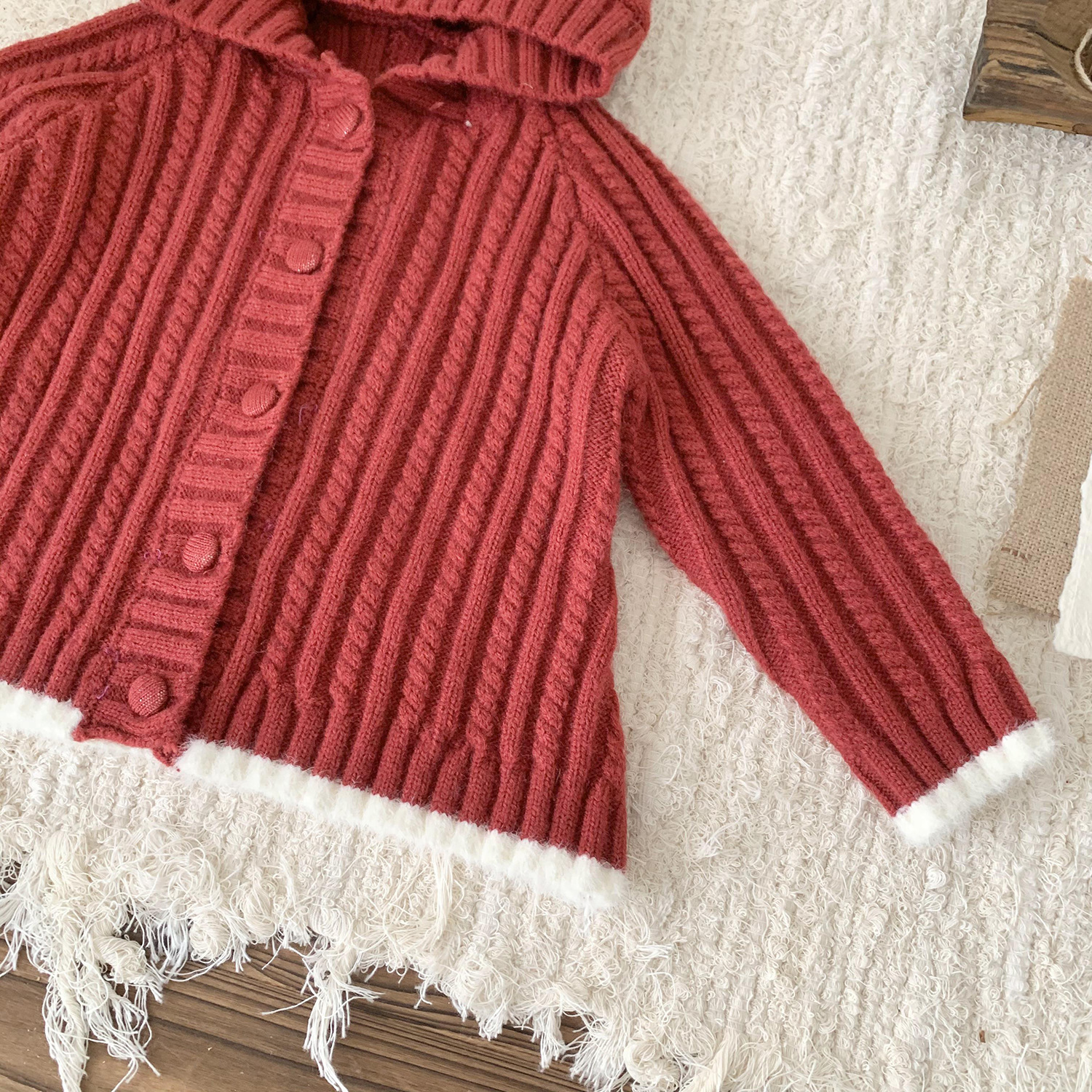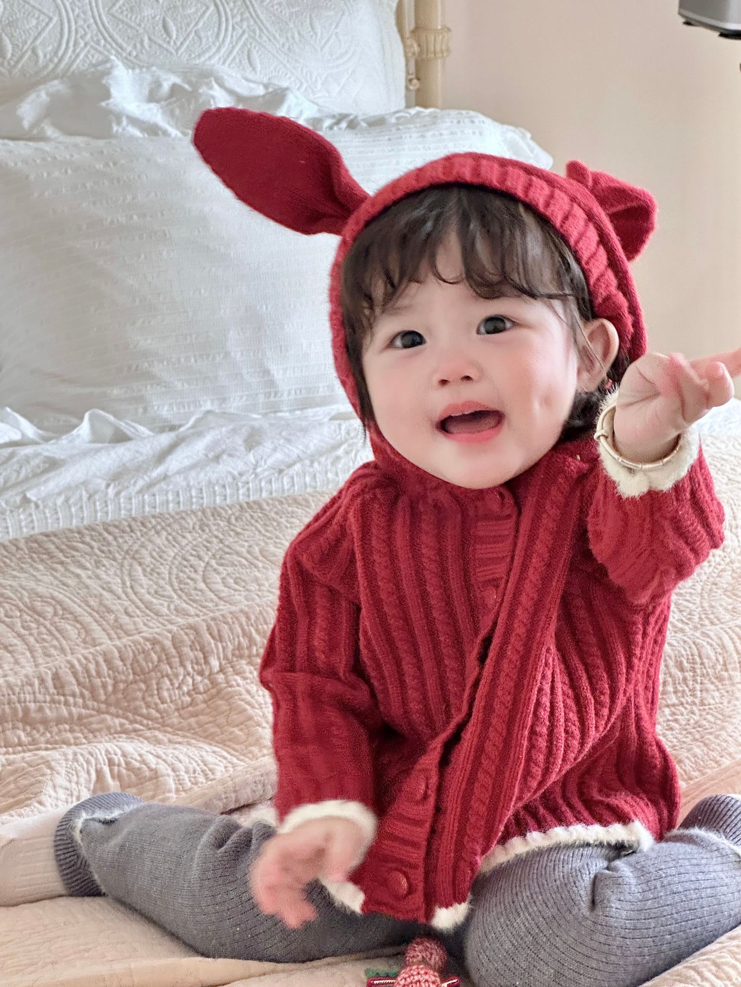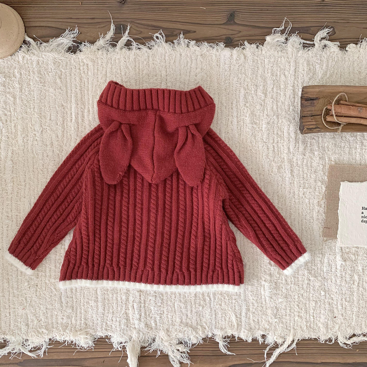 Cutemily Children's Wear Ins 후드 카디건 스웨터 여성의 아기 두꺼운 빈티지 트위스트 귀여운 토끼 귀 코트