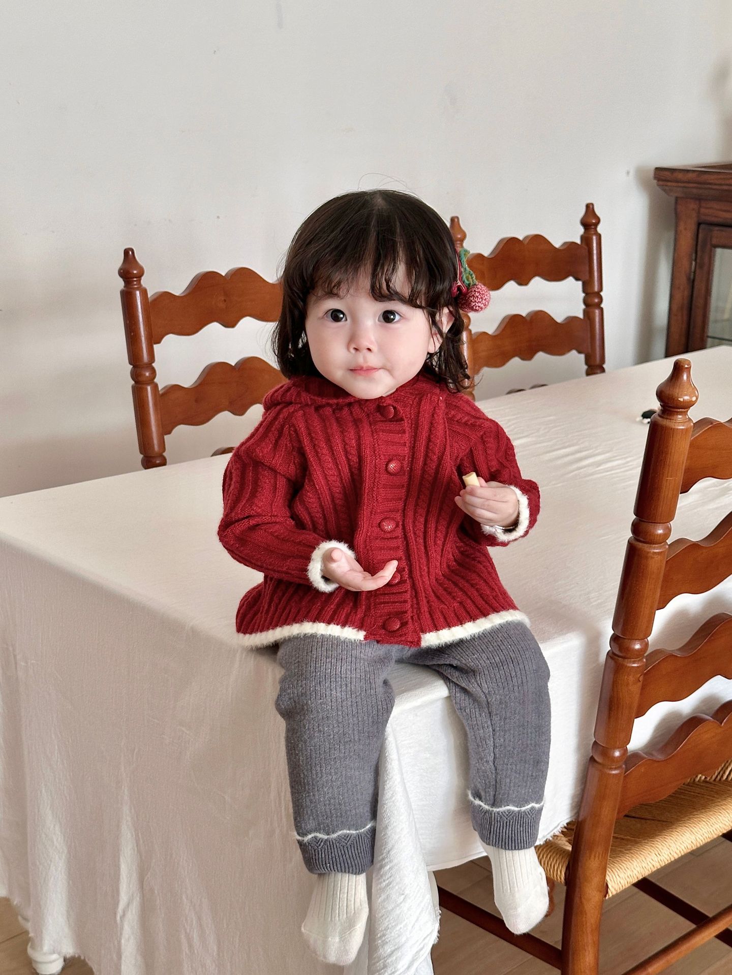 Cutemily Children's Wear Ins 후드 카디건 스웨터 여성의 아기 두꺼운 빈티지 트위스트 귀여운 토끼 귀 코트스토어 가기