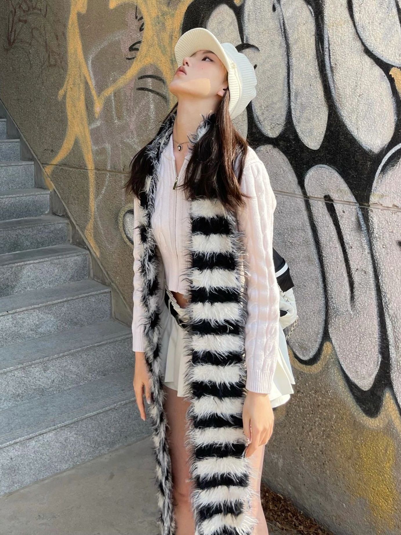 플러시 모조 밍크 울 긴 울 니트 멀티 사용 따뜻한 오목한 여성 스타 스카프와 함께 인 블로거