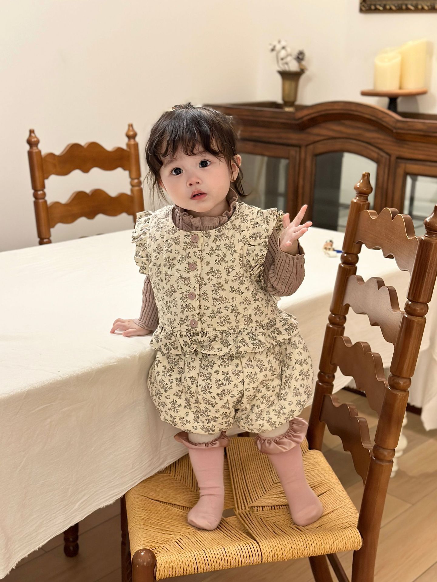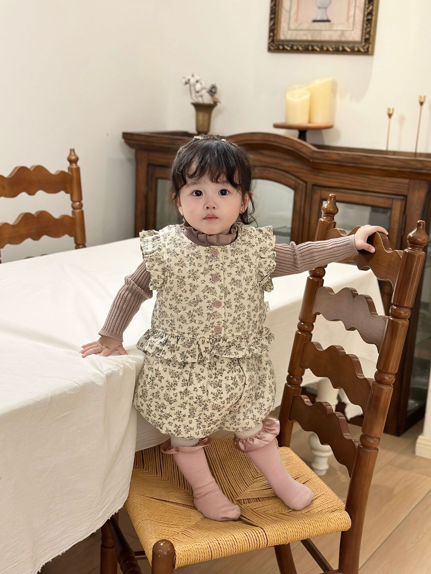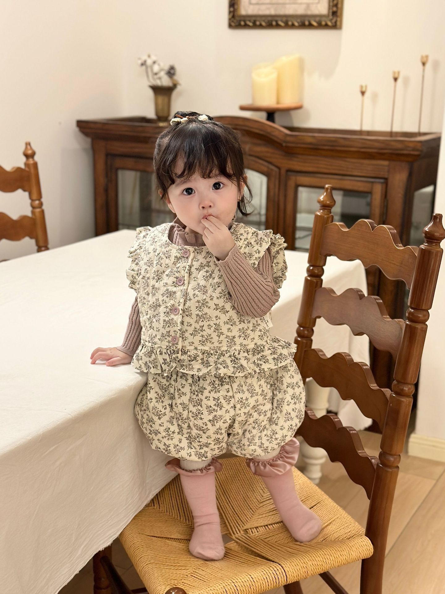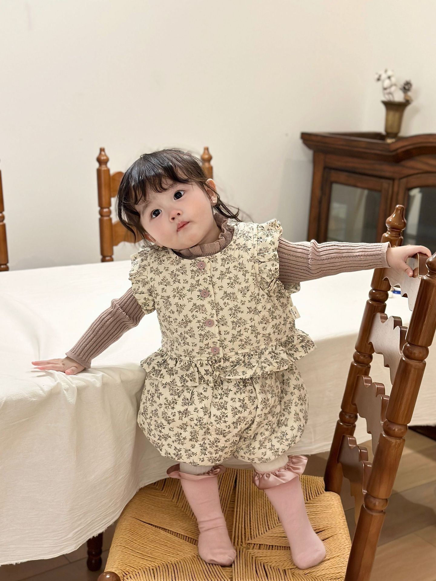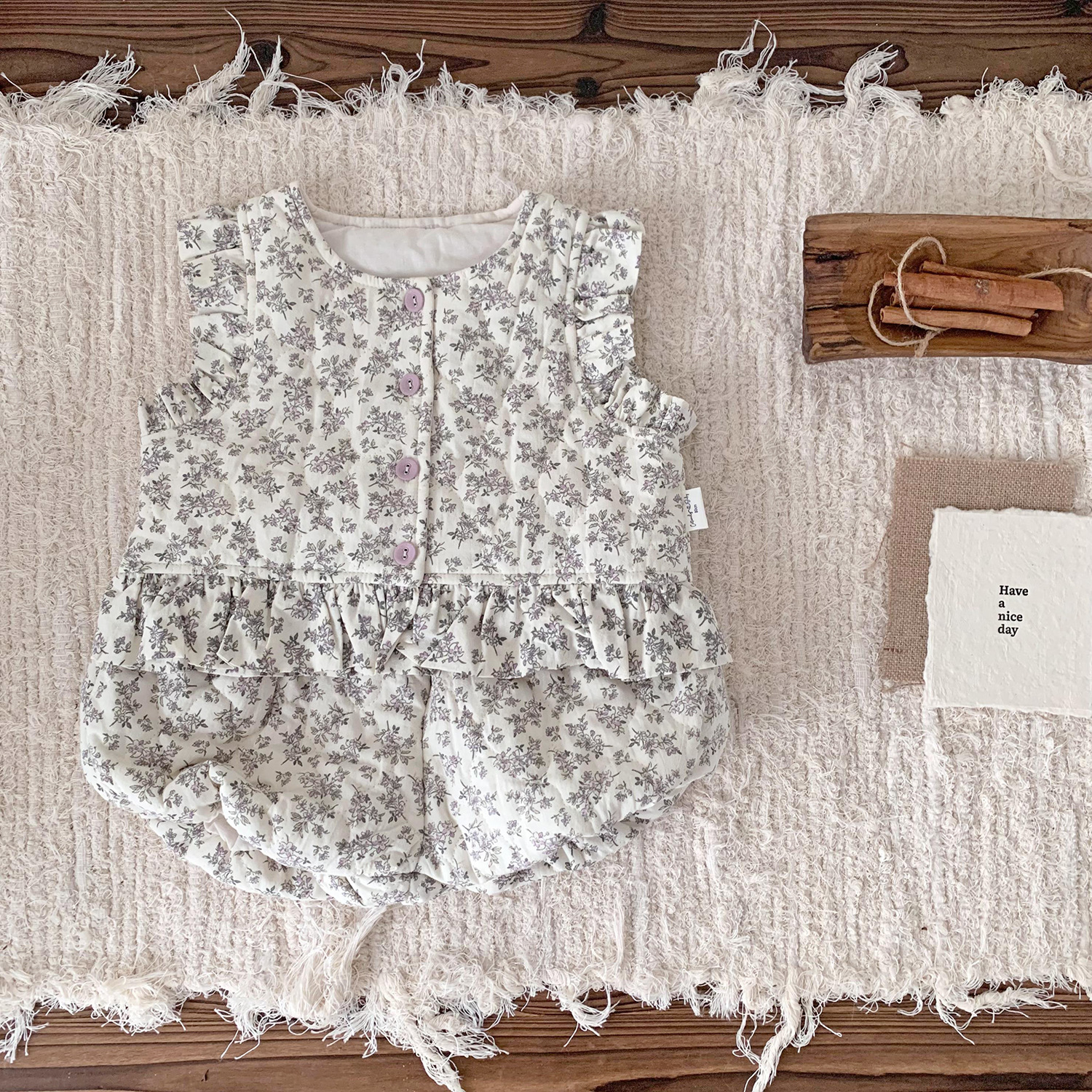 Cutemily 가을과 겨울 소녀 조끼 세트 꽃 주름 면화 연꽃 잎 조끼 두꺼운 반바지 2 개 세트