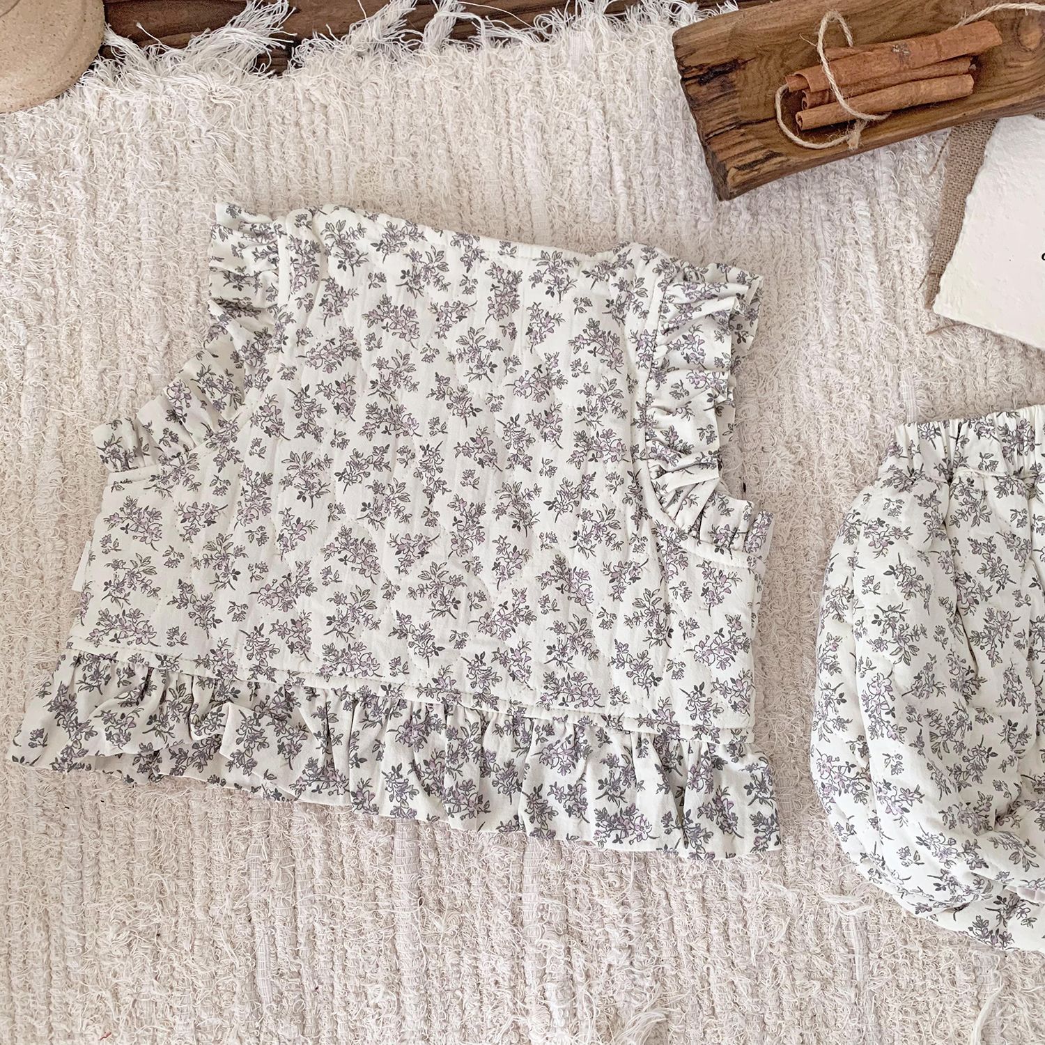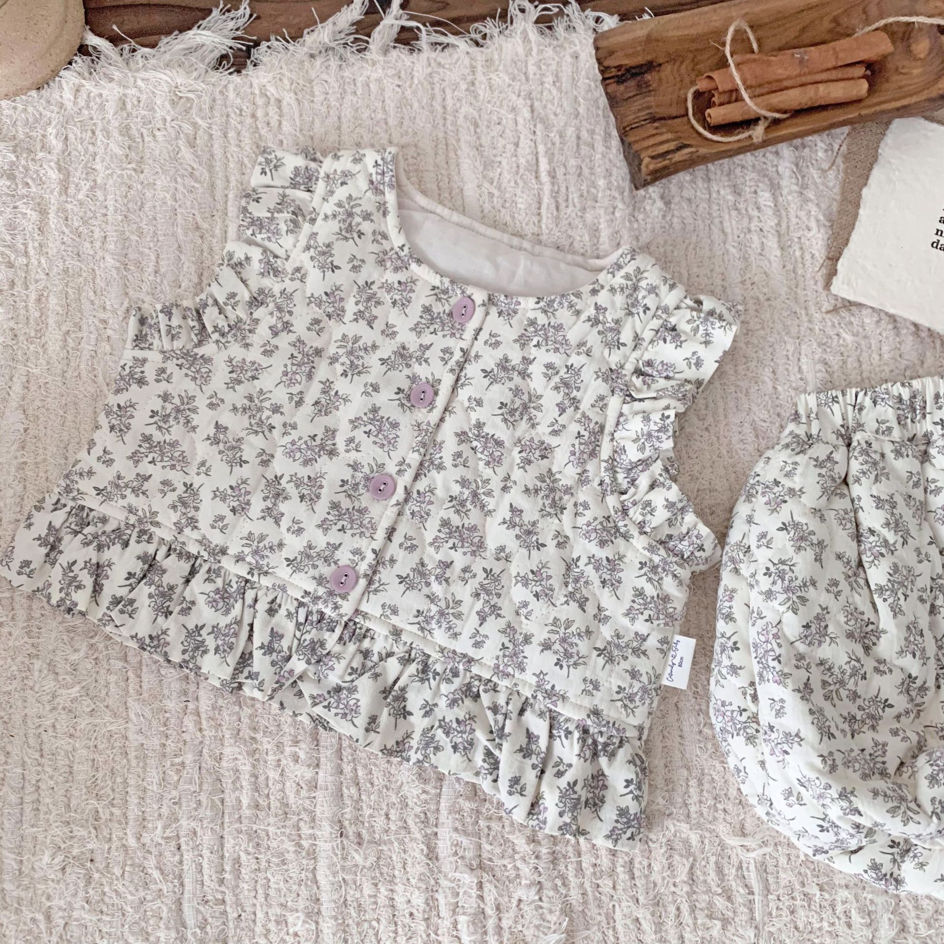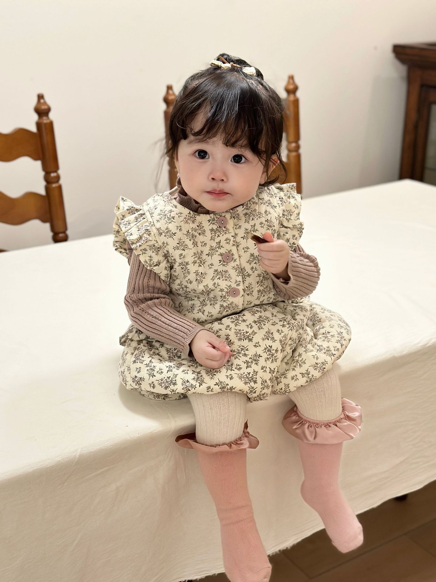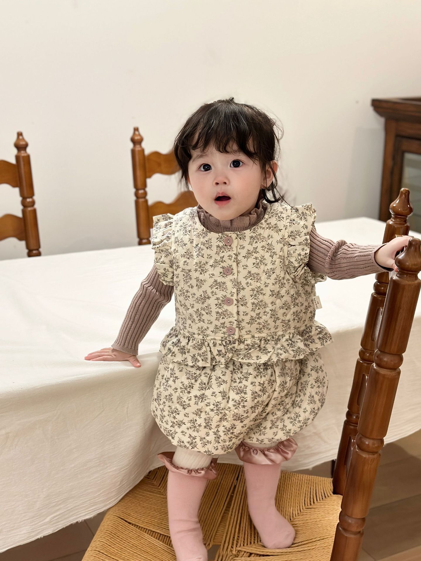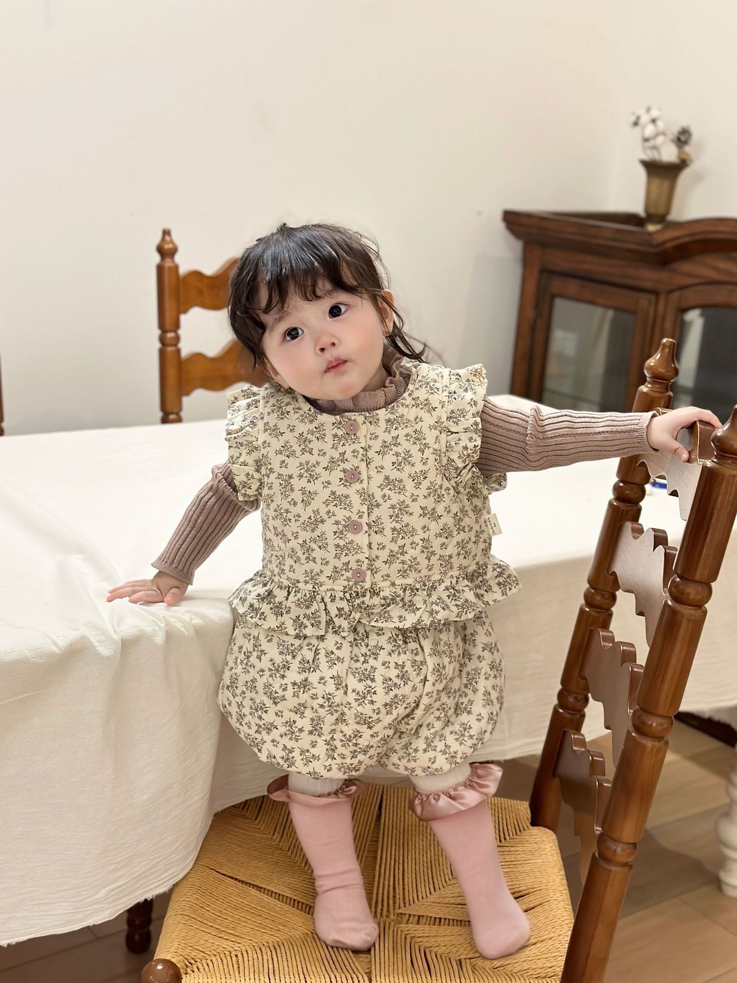 Cutemily 가을과 겨울 소녀 조끼 세트 꽃 주름 면화 연꽃 잎 조끼 두꺼운 반바지 2 개 세트