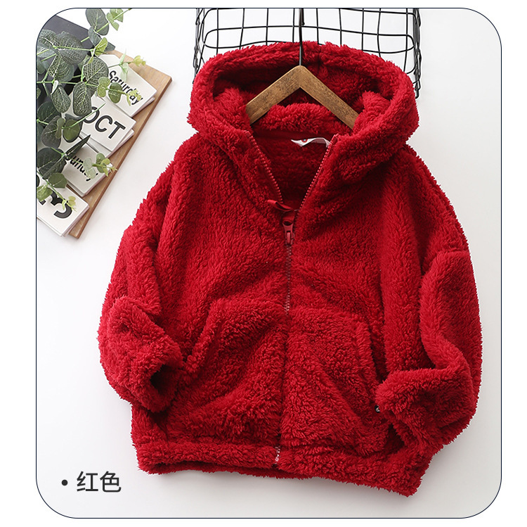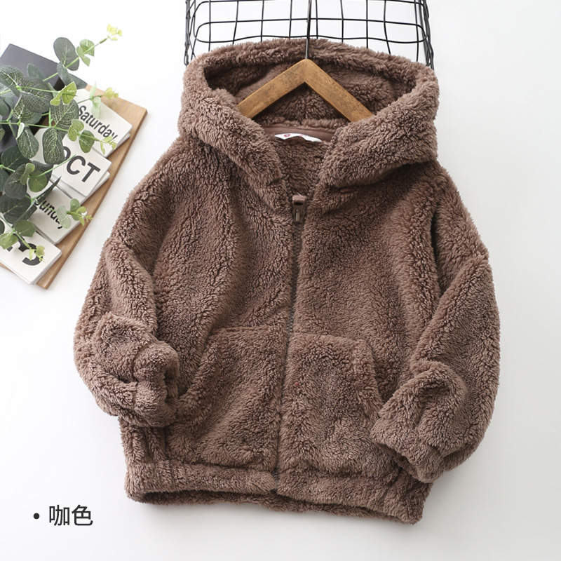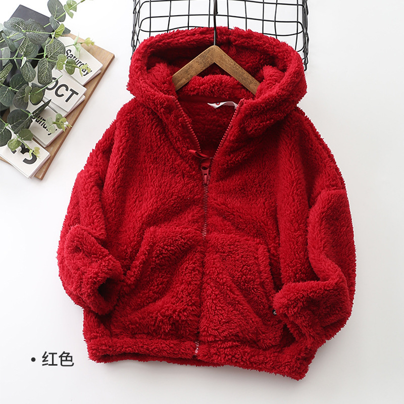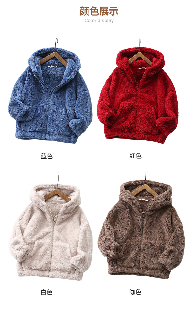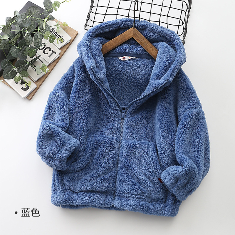 가을/겨울 새로운 편안한 코튼 울 어린이 지퍼 후드 큰 어린이 폴라 플리스 단색 코트 아동복 코트-084스토어 가기