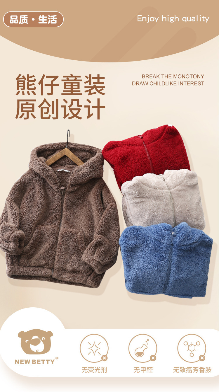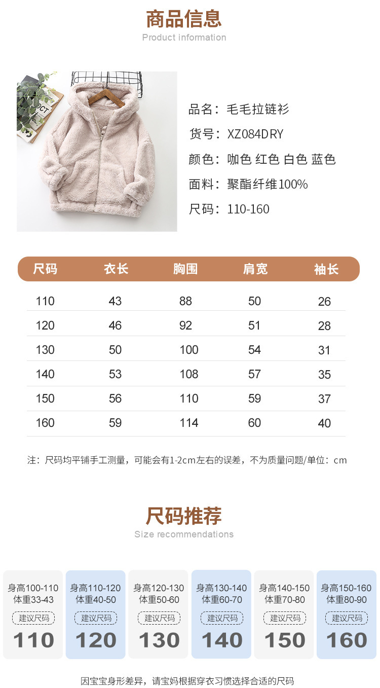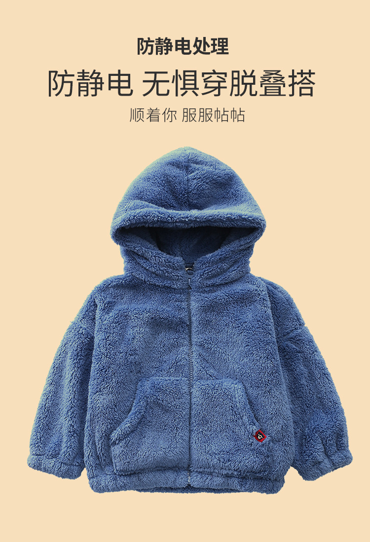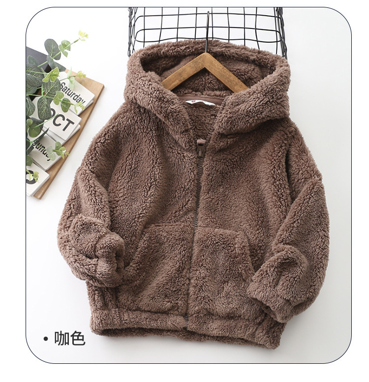 가을/겨울 새로운 편안한 코튼 울 어린이 지퍼 후드 큰 어린이 폴라 플리스 단색 코트 아동복 코트-084스토어 가기