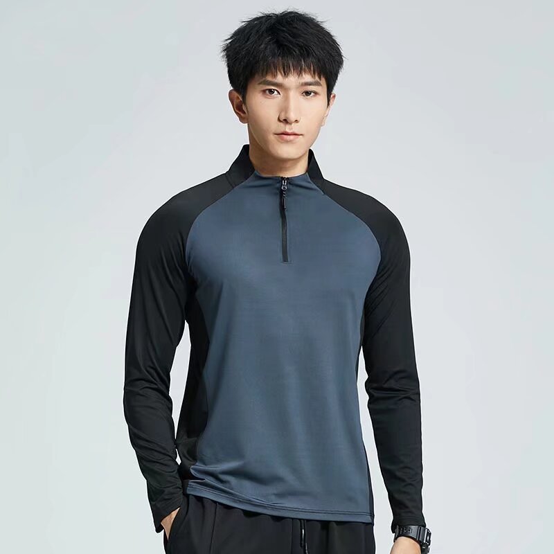 봄과 가을 여름 대외 무역 반 지퍼 훈련 옷 남자의 빠른 건조 옷 긴팔 선 스크린 스포츠 트랙 및 필드 스포츠 달리기 티셔츠