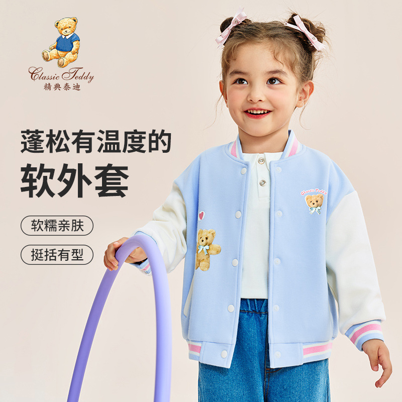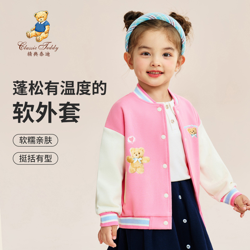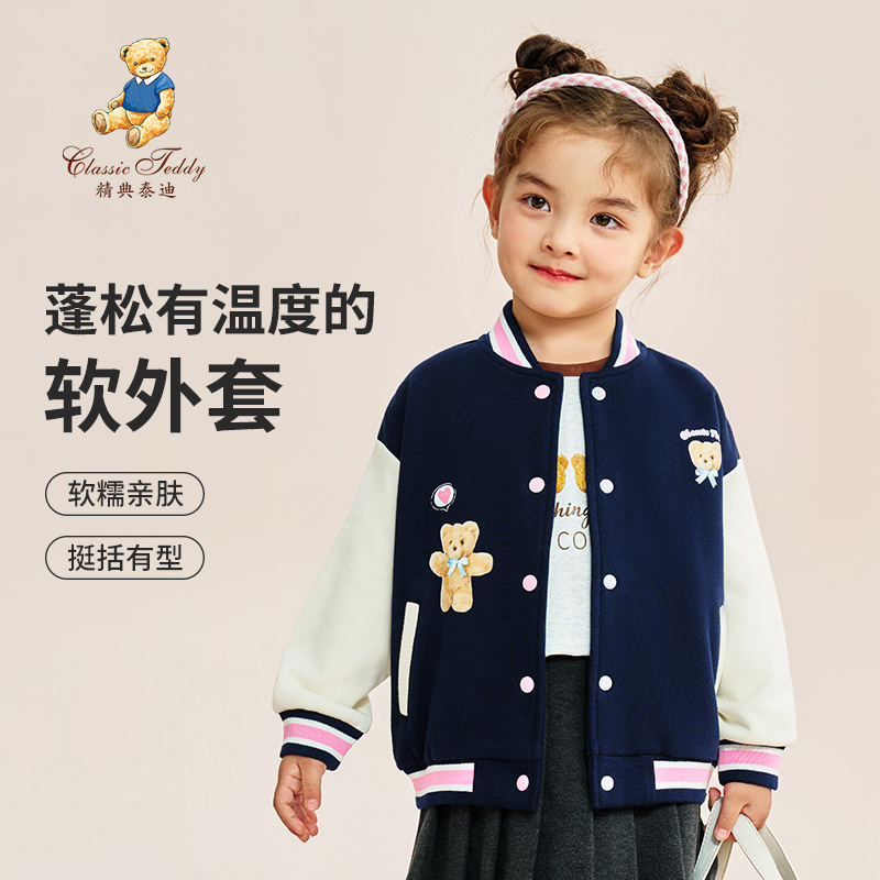 클래식 테디 아동복 여아용 재킷 봄 어린이 야구 재킷 중소형 아동용 학교 스타일 다용도 재킷스토어 가기