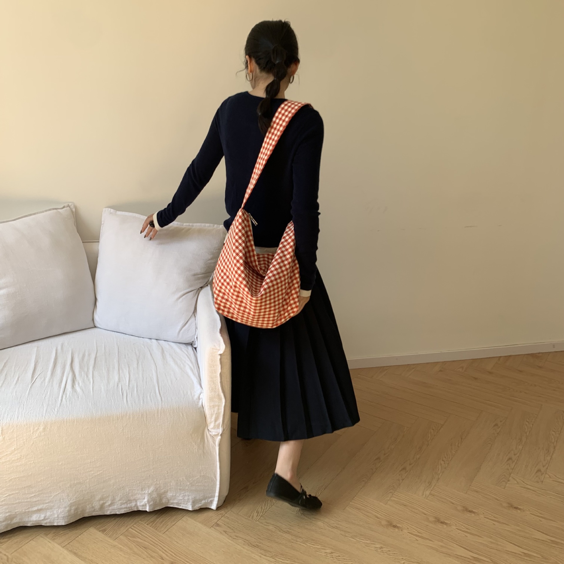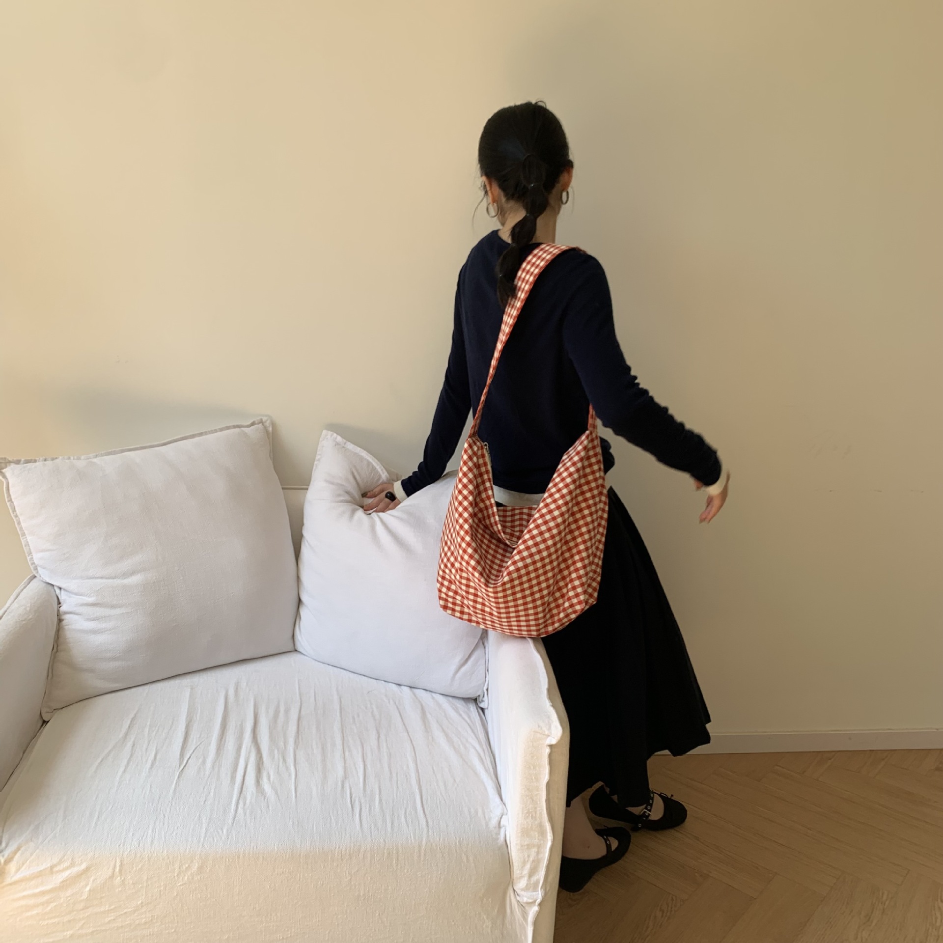 크로스 바디 백 여성의 절묘한 격자 무늬 레트로 어깨 만두 백 대용량 작은 신선한 스타일 캐주얼 통근 나일론 가방 여성용