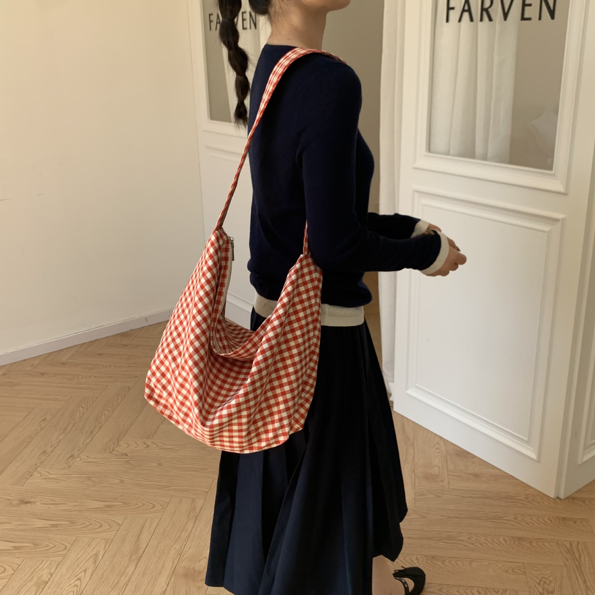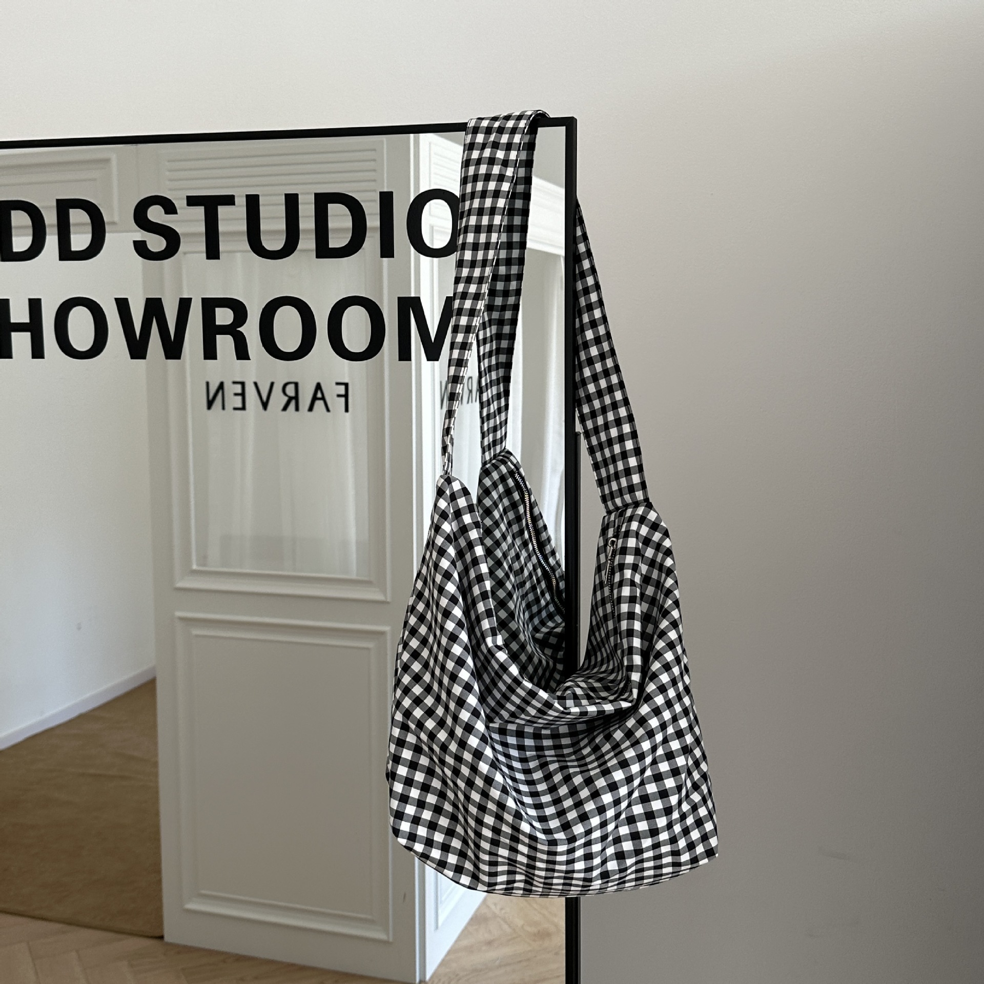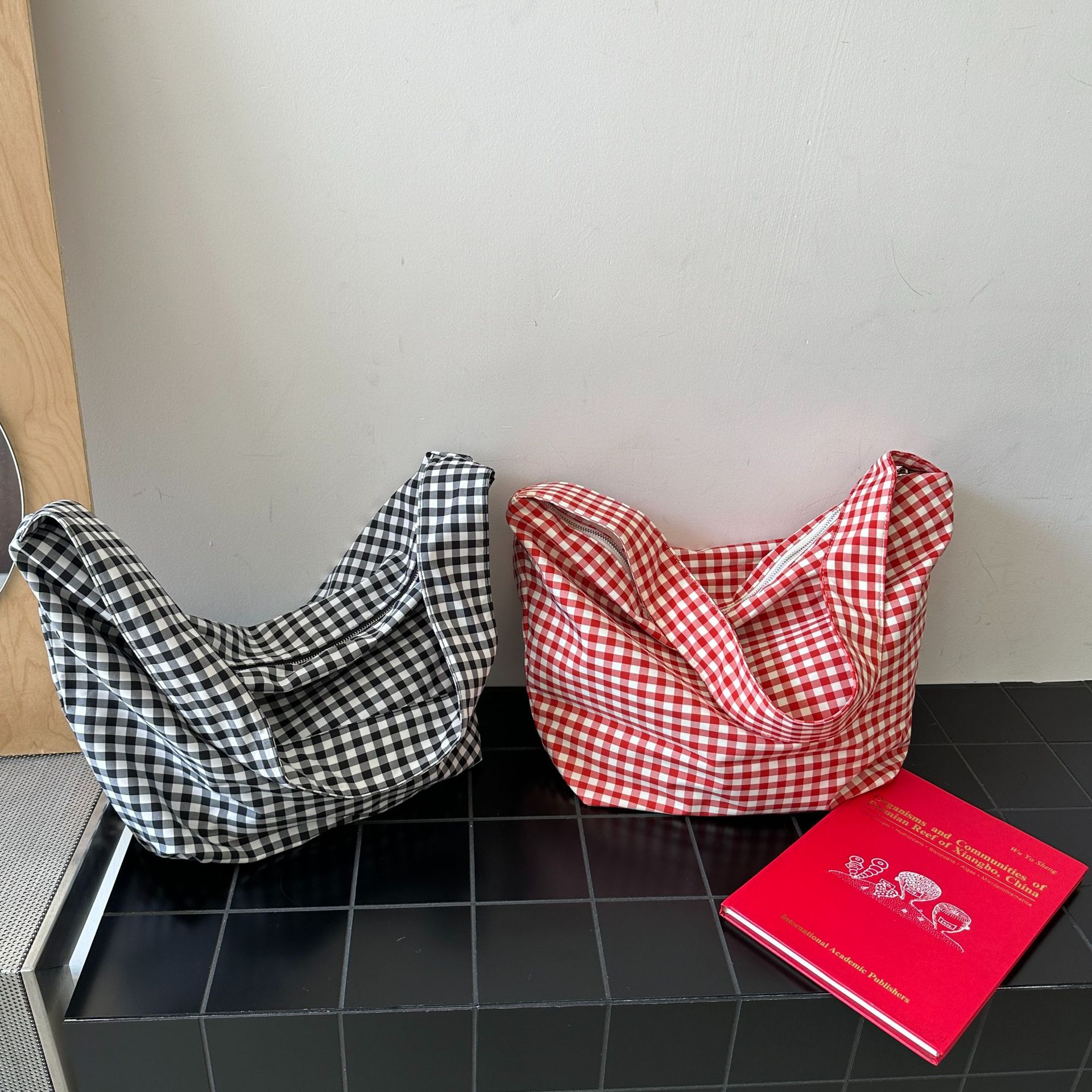 크로스 바디 백 여성의 절묘한 격자 무늬 레트로 어깨 만두 백 대용량 작은 신선한 스타일 캐주얼 통근 나일론 가방 여성용스토어 가기