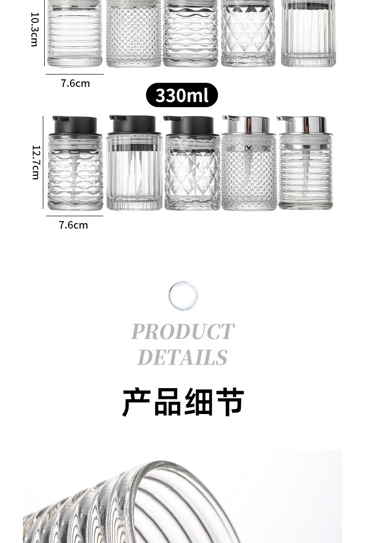 • 330ml, 수직 패턴 펌프 헤드, 유리