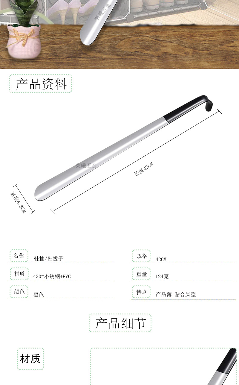 국경을 넘는 뜨거운 42CM 스테인레스 스틸 딥 플라스틱 신발 풀러 게으른 사람들이 신발을 착용하고 벗습니다. 임산부는 신발 리프팅 장치 신발 펌핑을 구부리지 않습니다.스토어 가기