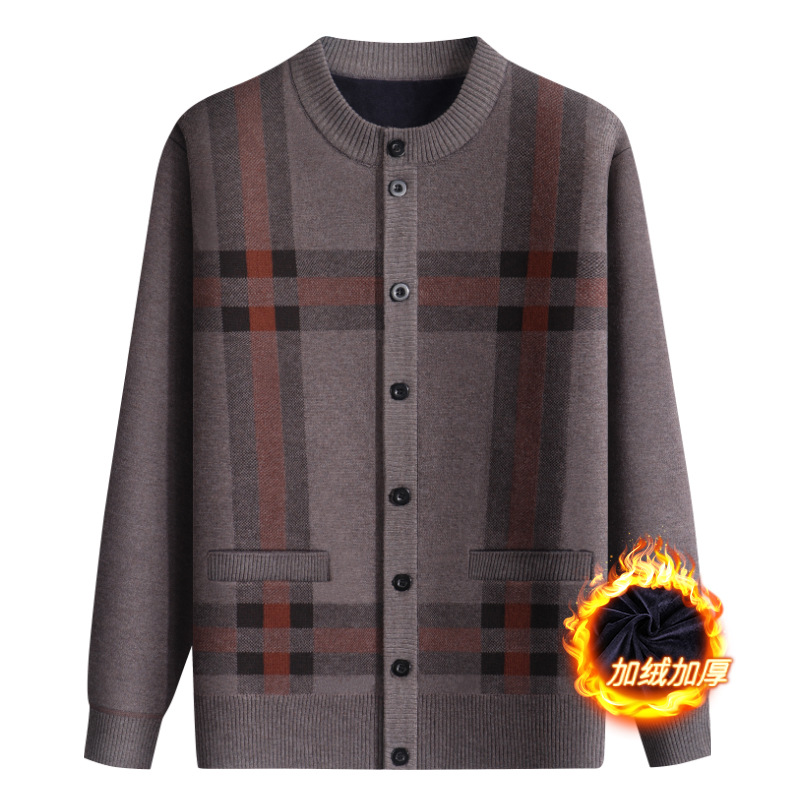 노년 카디건 스웨터 노년 할아버지 남자 겨울 노년 격자 무늬 플러스 사이즈 니트웨어 코트 아빠 겨울 옷