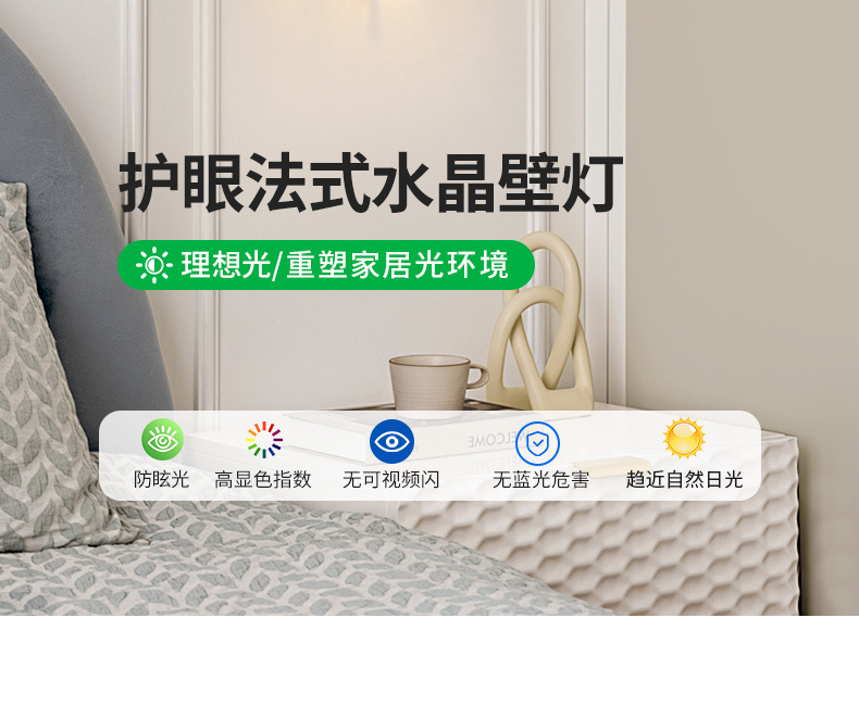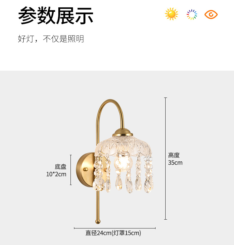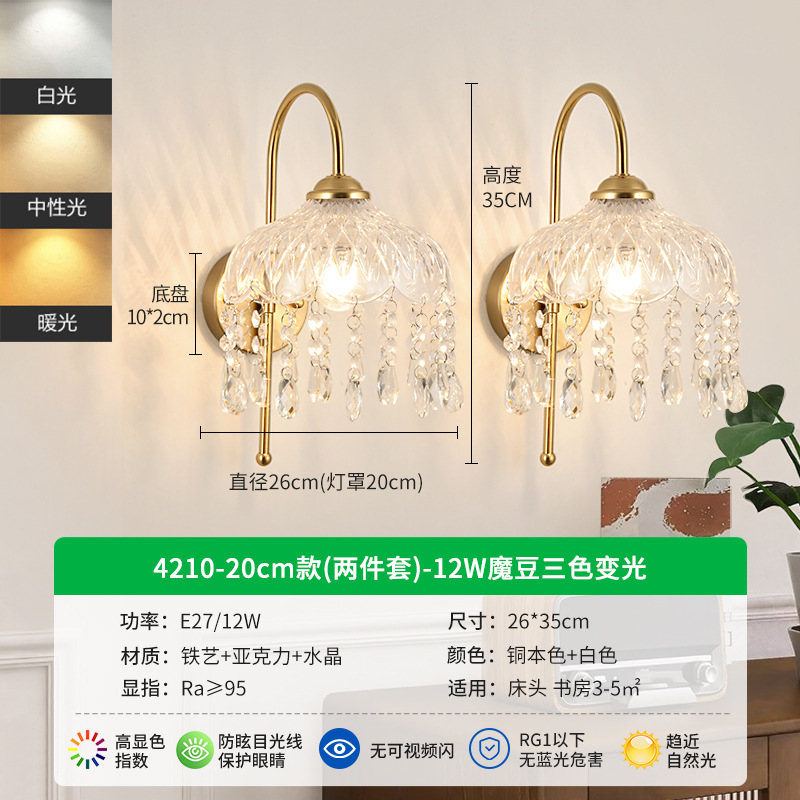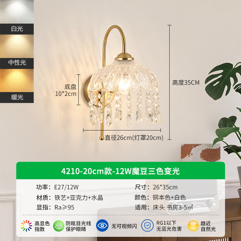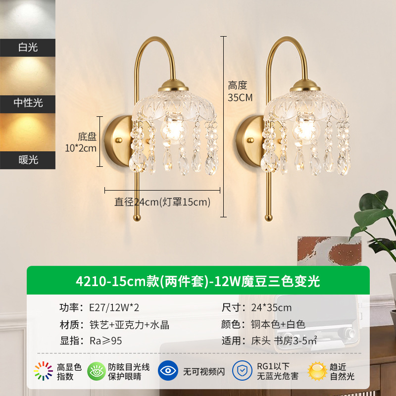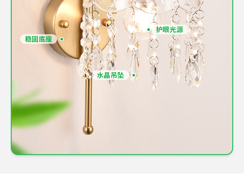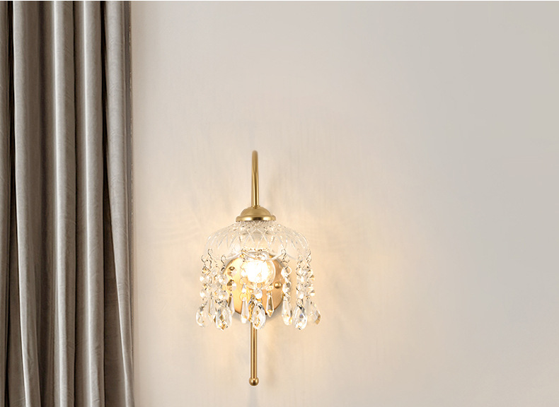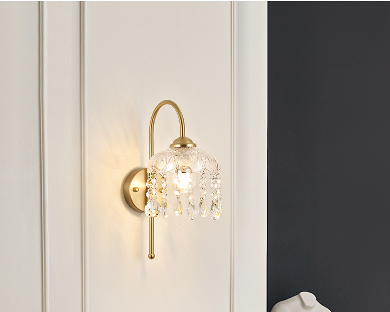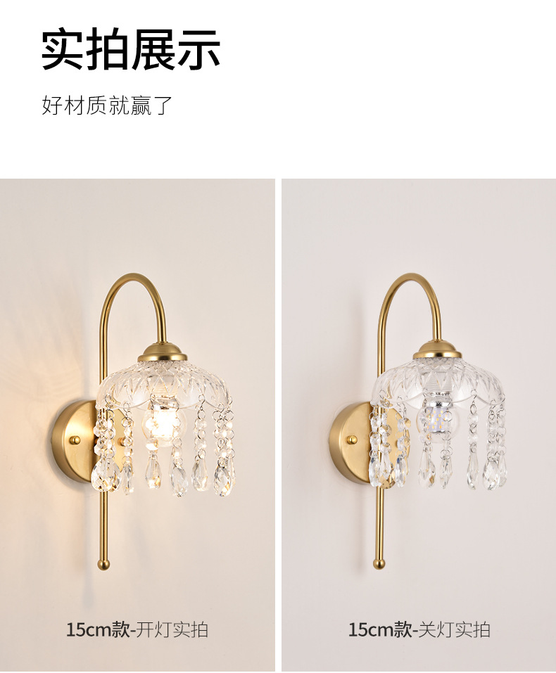 벽등 침실 침대 옆등 라이트 럭셔리 복도등 거실 벽등 프렌치 스타일 배경벽 장식 레트로 크리스탈 램프