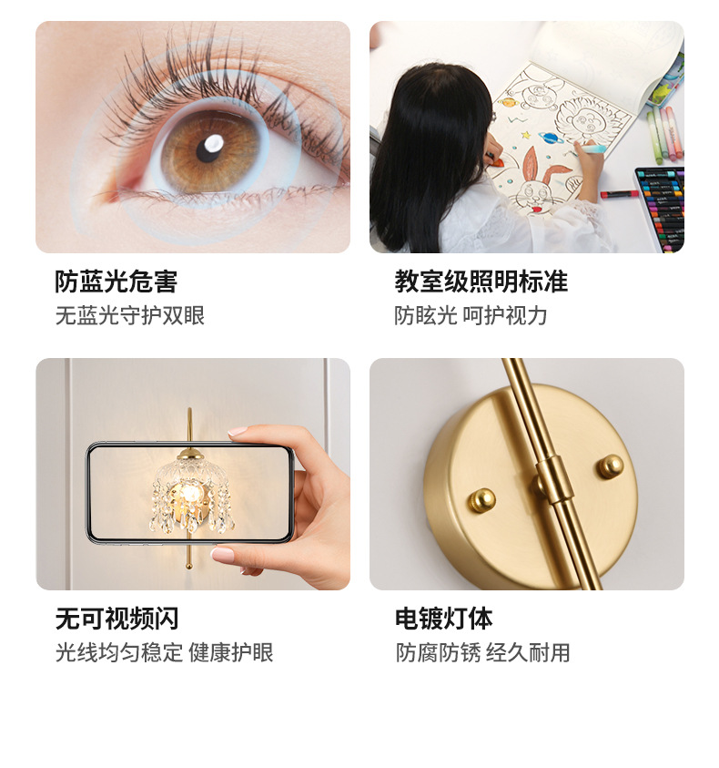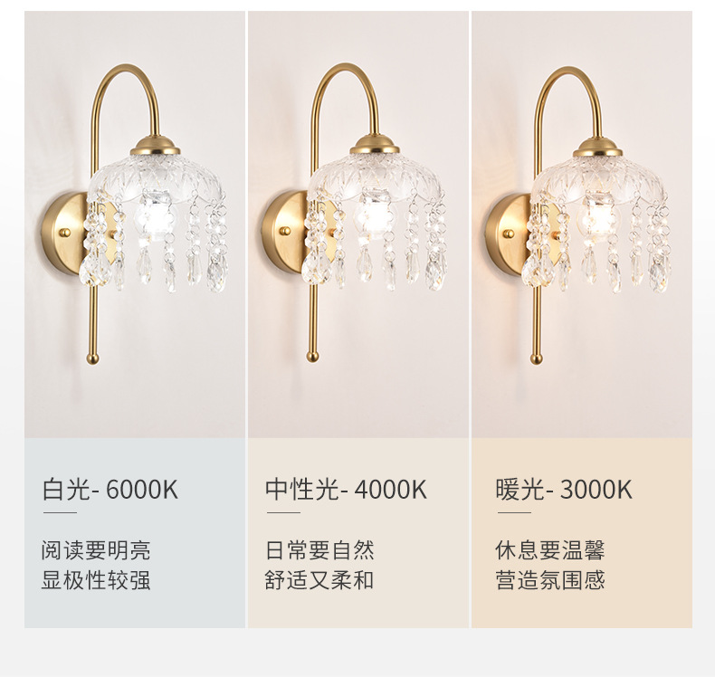 벽등 침실 침대 옆등 라이트 럭셔리 복도등 거실 벽등 프렌치 스타일 배경벽 장식 레트로 크리스탈 램프스토어 가기