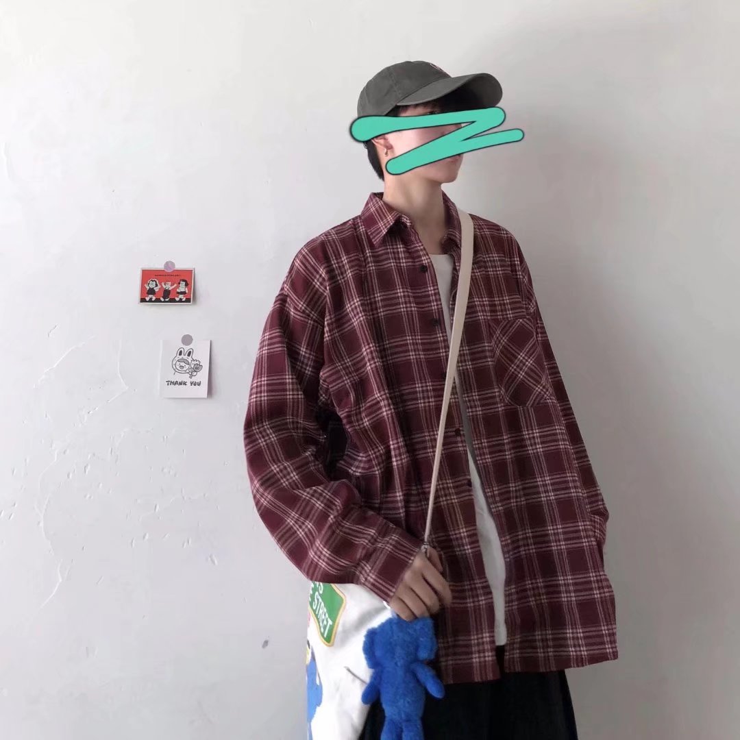 격자 무늬 긴팔 셔츠 남자 봄과 가을 일본 스타일 복고풍 고급 Faggot 핸섬 셔츠 주니어 옷깃 캐주얼 재킷스토어 가기