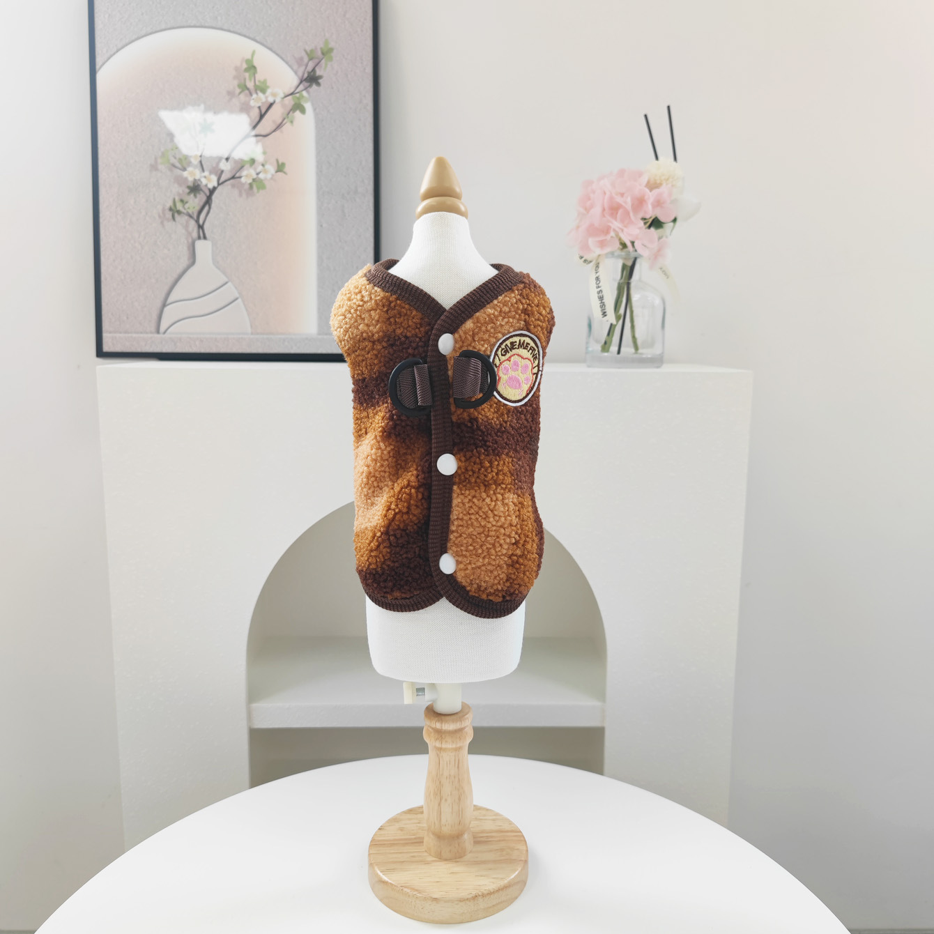 • 노란색과 갈색 체크 무늬의 두꺼운 애완 동물 조끼