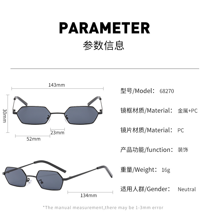 트렌디 한 새로운 작은 프레임 금속 패션 선글라스 다각형 대외 무역 국경 힙합 복고풍 선글라스 도매