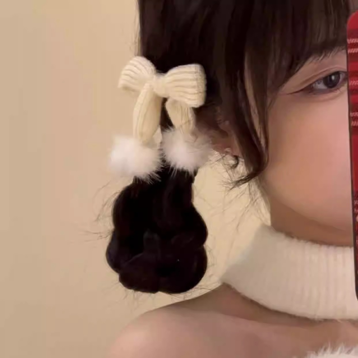 겨울 새해 머리 공 활 여성용 귀여운 일본 달콤한 폰테일 클립 봉제 사이드 클립 헤어 액세서리 헤드웨어