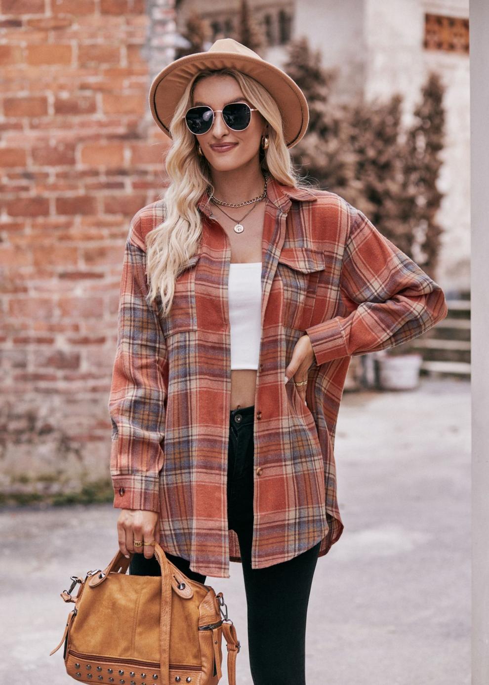 2024 Amazon 여성 가을 신작 국경 간 유럽과 미국 캐주얼 패션 오버 사이즈 루즈 체크 무늬 셔츠