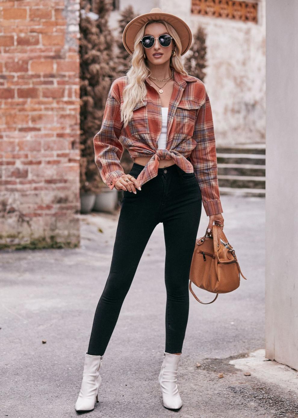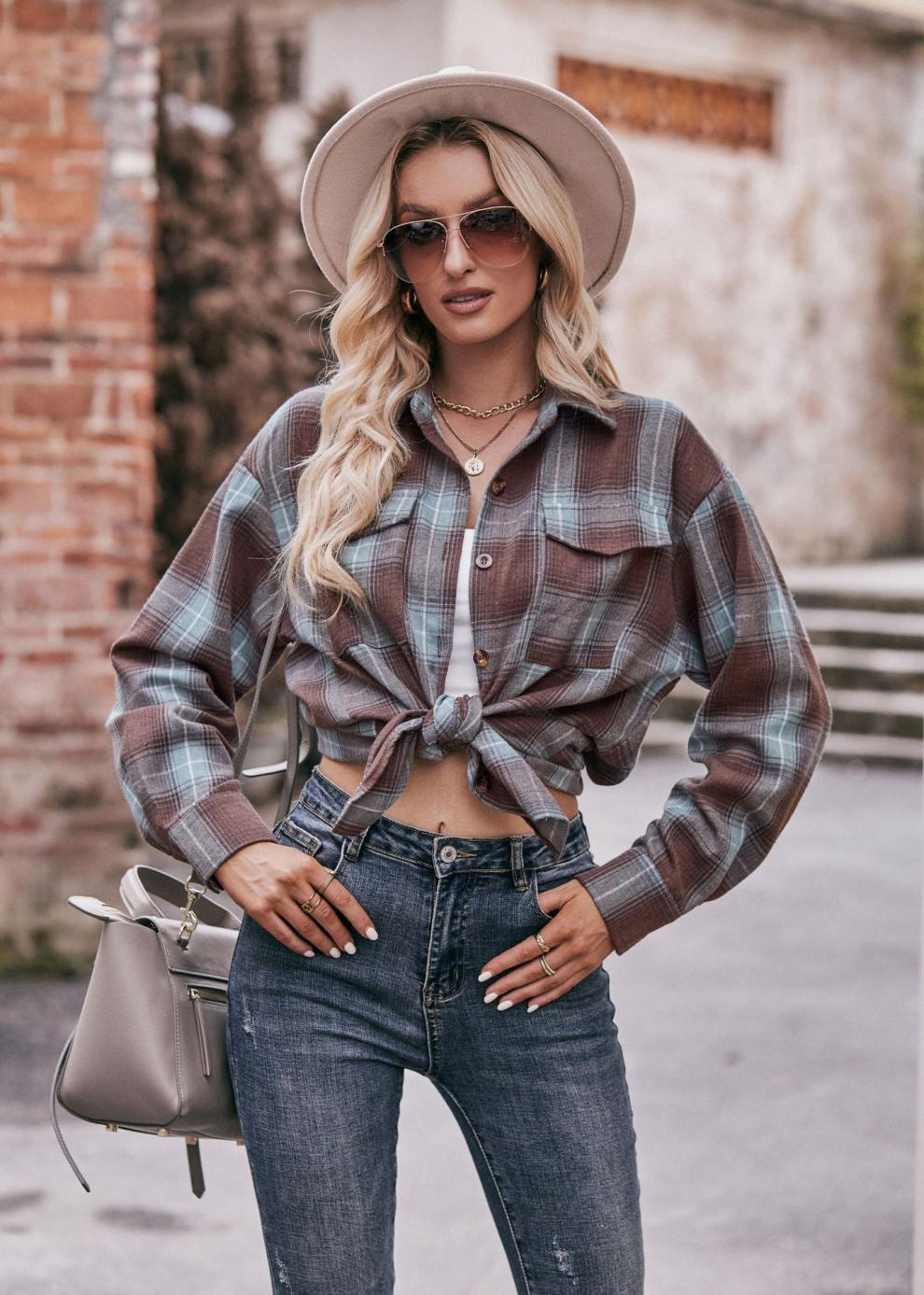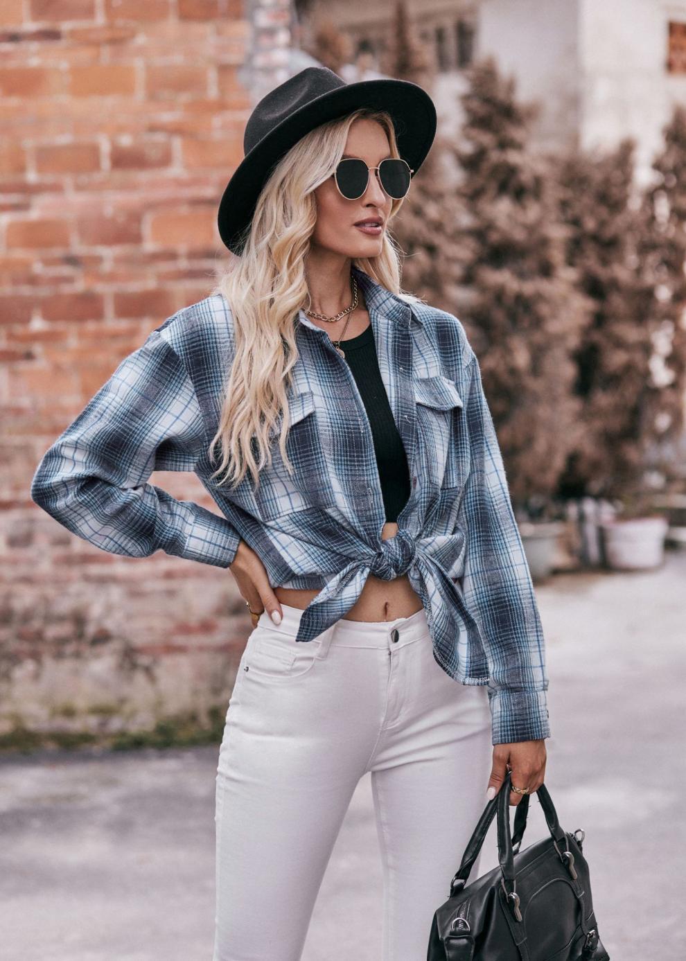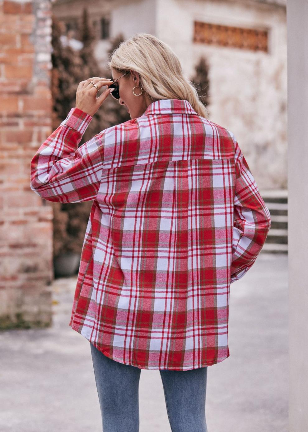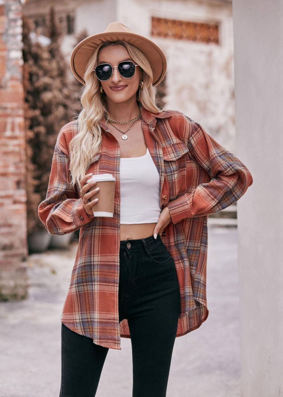 2024 Amazon 여성 가을 신작 국경 간 유럽과 미국 캐주얼 패션 오버 사이즈 루즈 체크 무늬 셔츠스토어 가기
