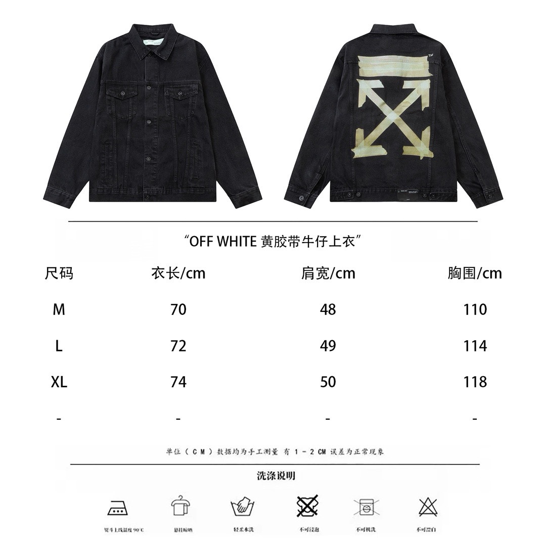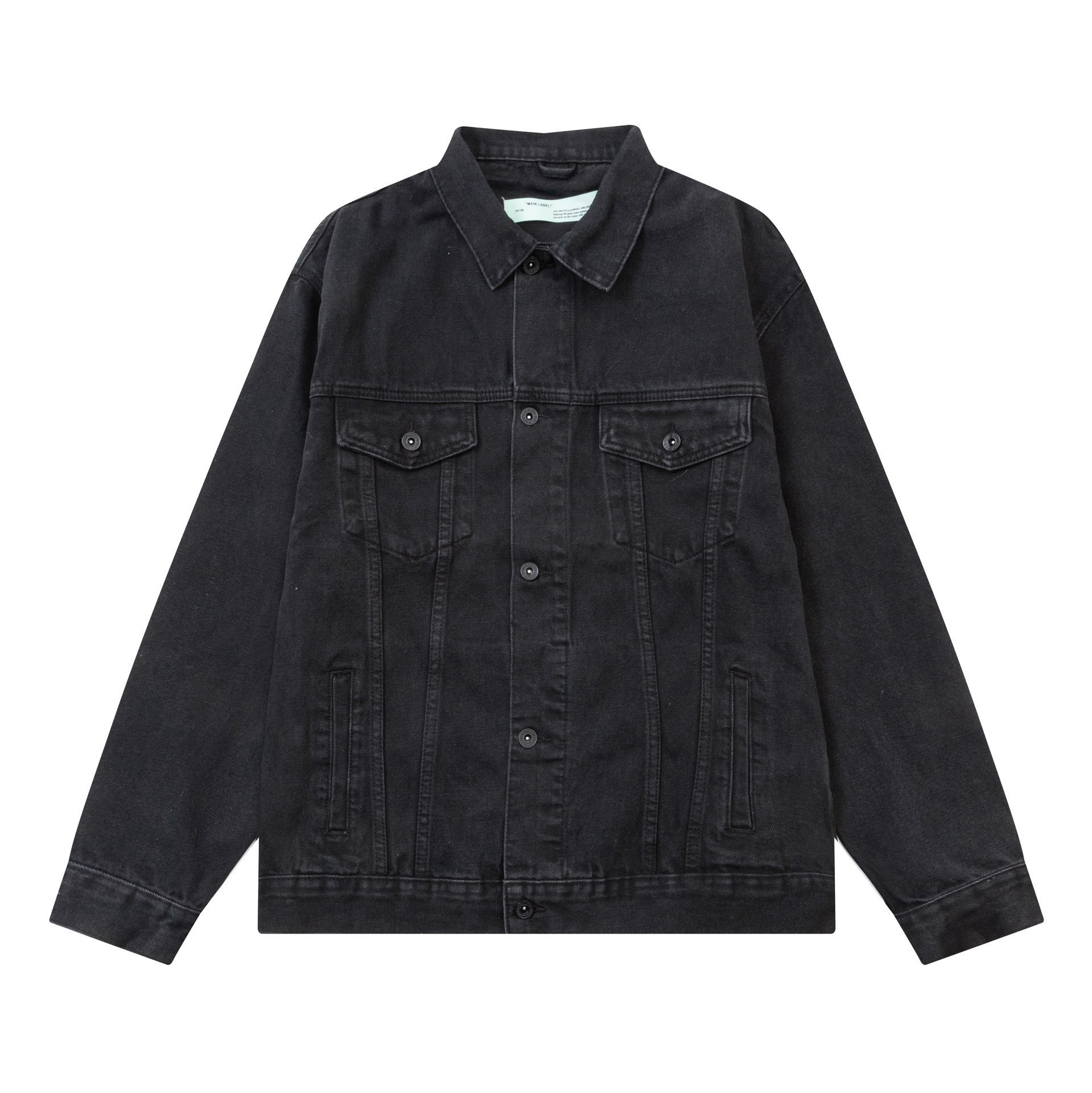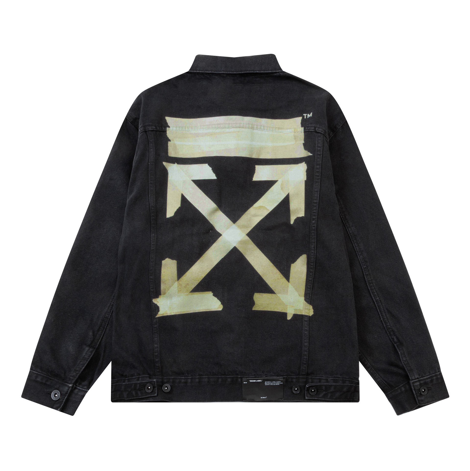 2024ss 새로운 OW 테이프 패치 화살표 캐주얼 느슨한 남성과 여성의 블랙 데님 재킷 코트스토어 가기