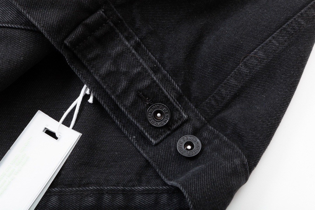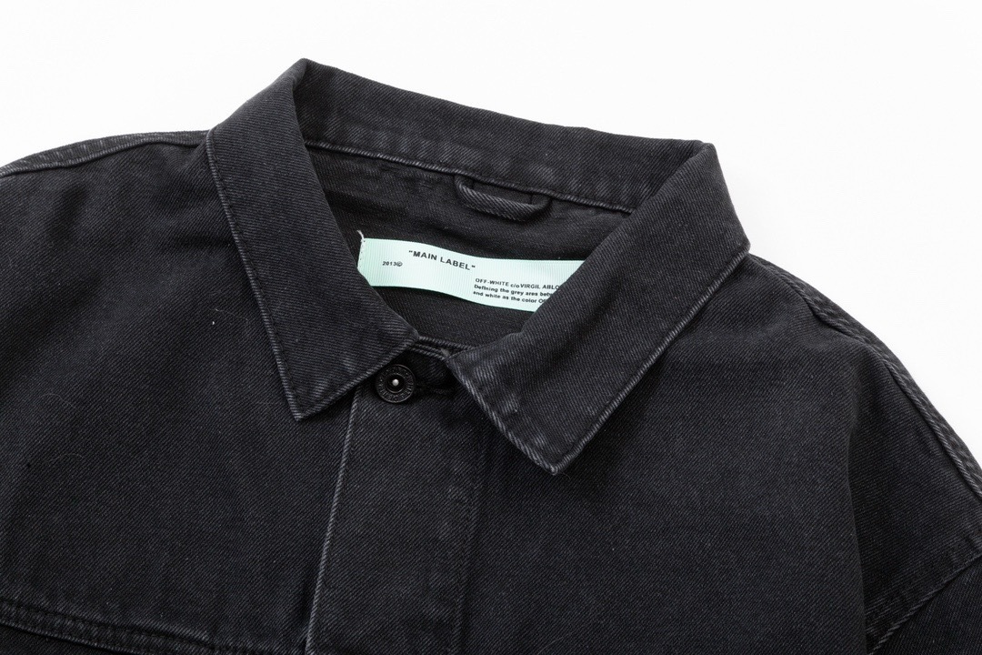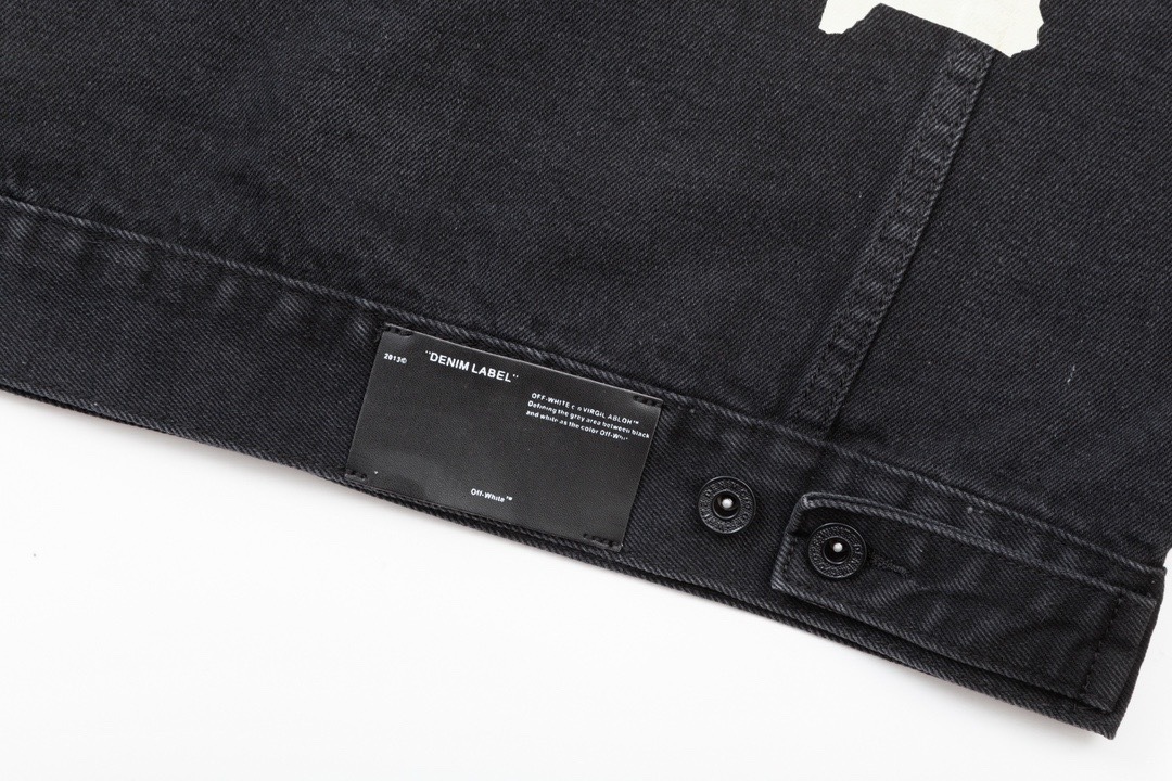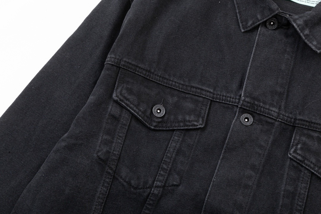2024ss 새로운 OW 테이프 패치 화살표 캐주얼 느슨한 남성과 여성의 블랙 데님 재킷 코트스토어 가기
