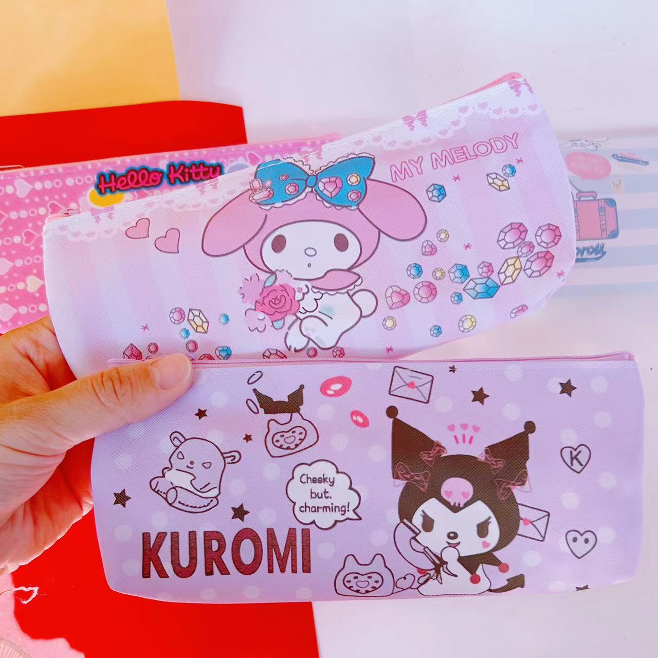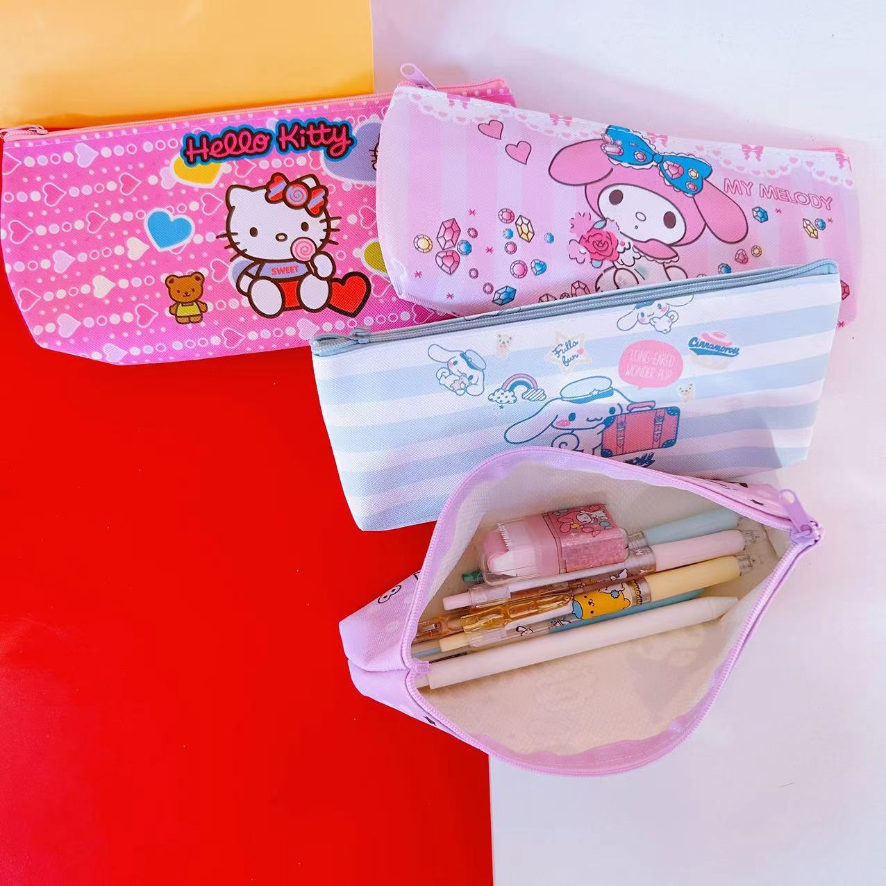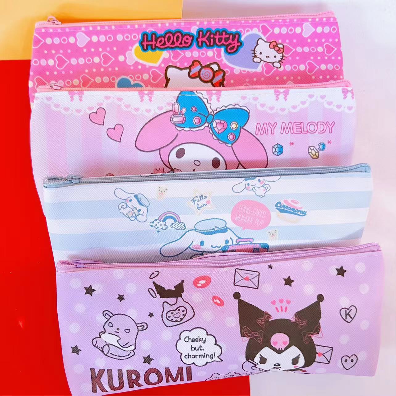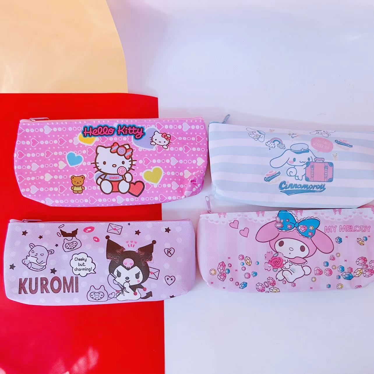 산리오 연필 가방 높은 색상 가치 쿨로 미 PU 가죽 단일 레이어 문구 가방 학생 연필 가방 화장품 브러시 보관 가방