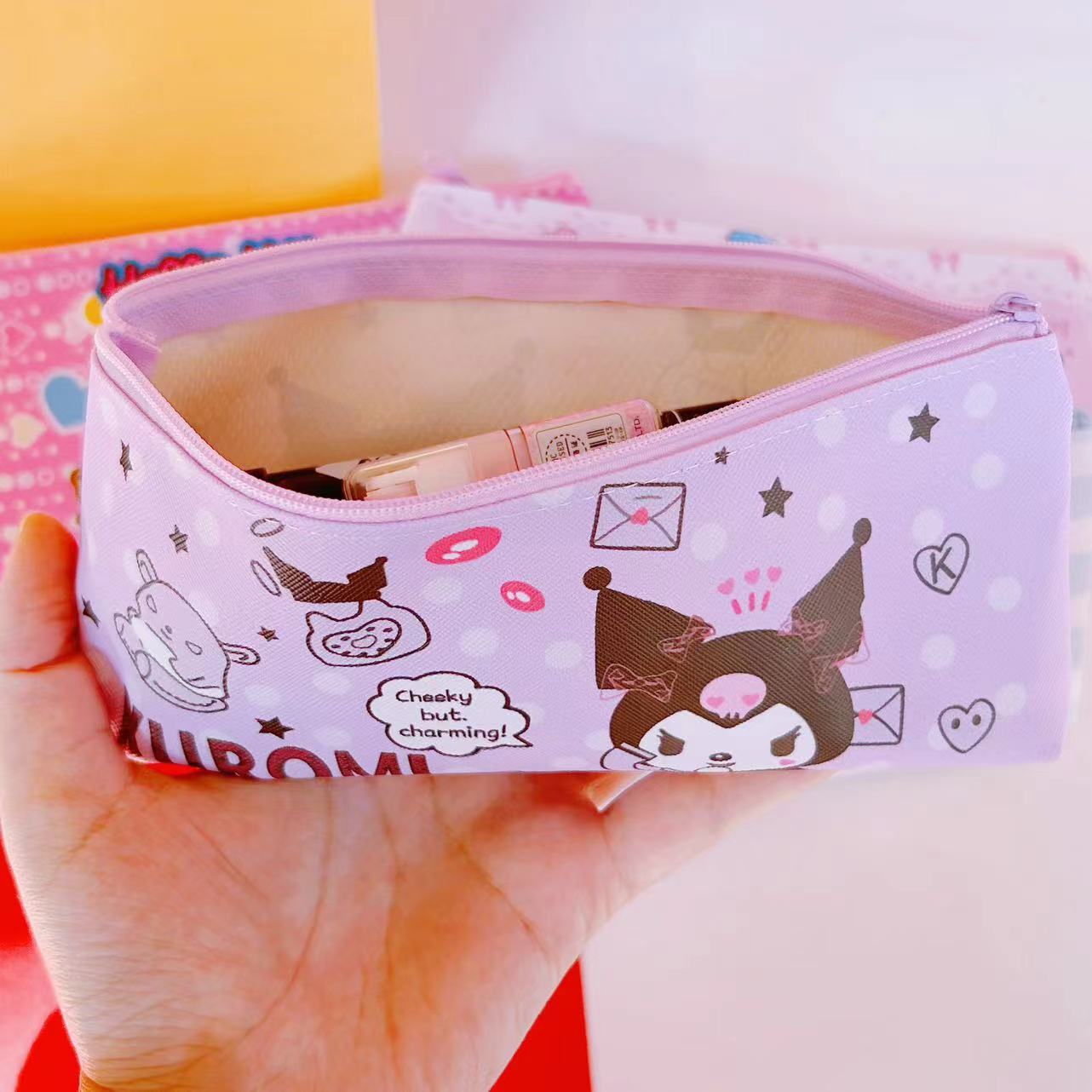 산리오 연필 가방 높은 색상 가치 쿨로 미 PU 가죽 단일 레이어 문구 가방 학생 연필 가방 화장품 브러시 보관 가방스토어 가기
