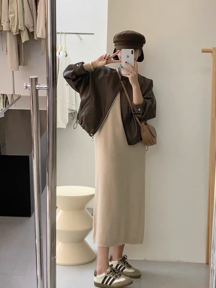다크 브라운 가죽 자켓 여성 가죽 자켓 2023 새로운 폭발 홍콩 스타일 짧은 오토바이 인기 미국 레트로 올해스토어 가기